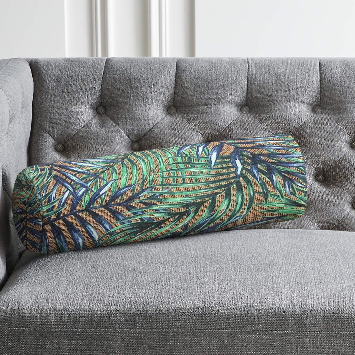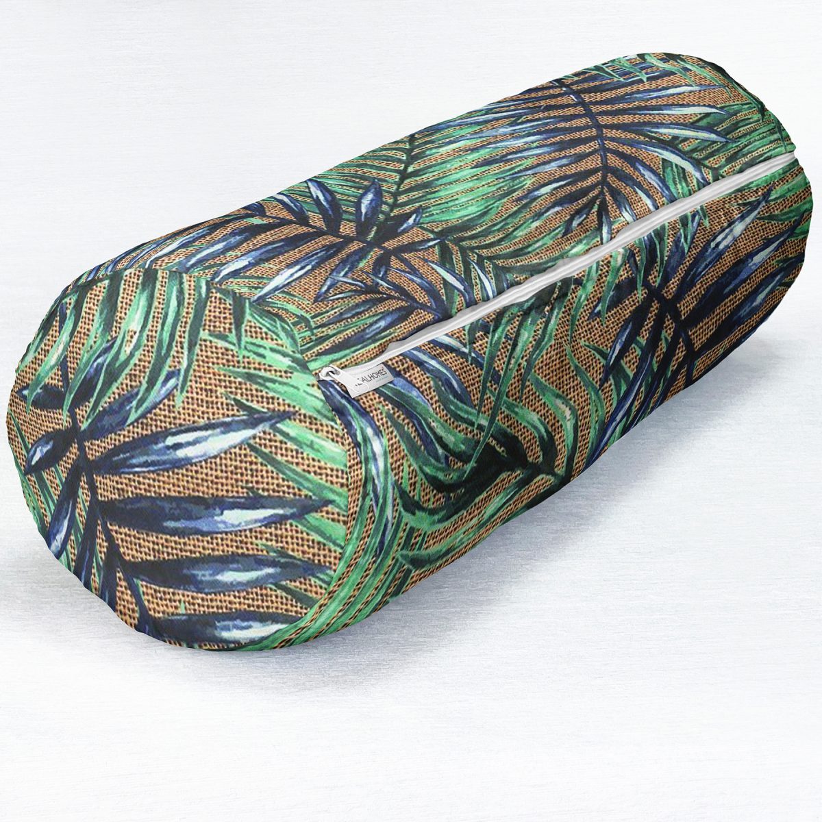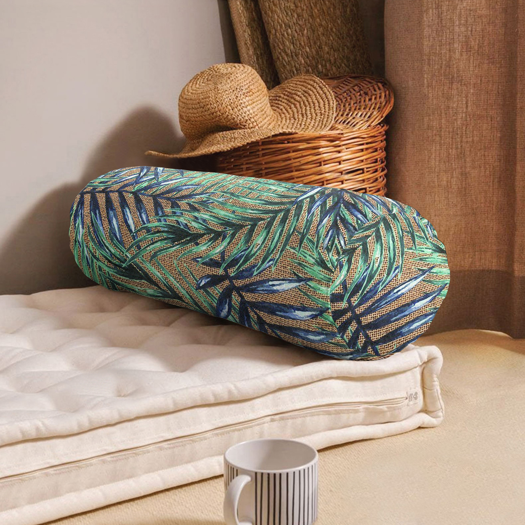 Çuval Zeminde Renkli Yapraklar Desenli Dekoratif İç Dolgulu Fermuarlı Çok Amaçlı Silindir Yastık Kırlent