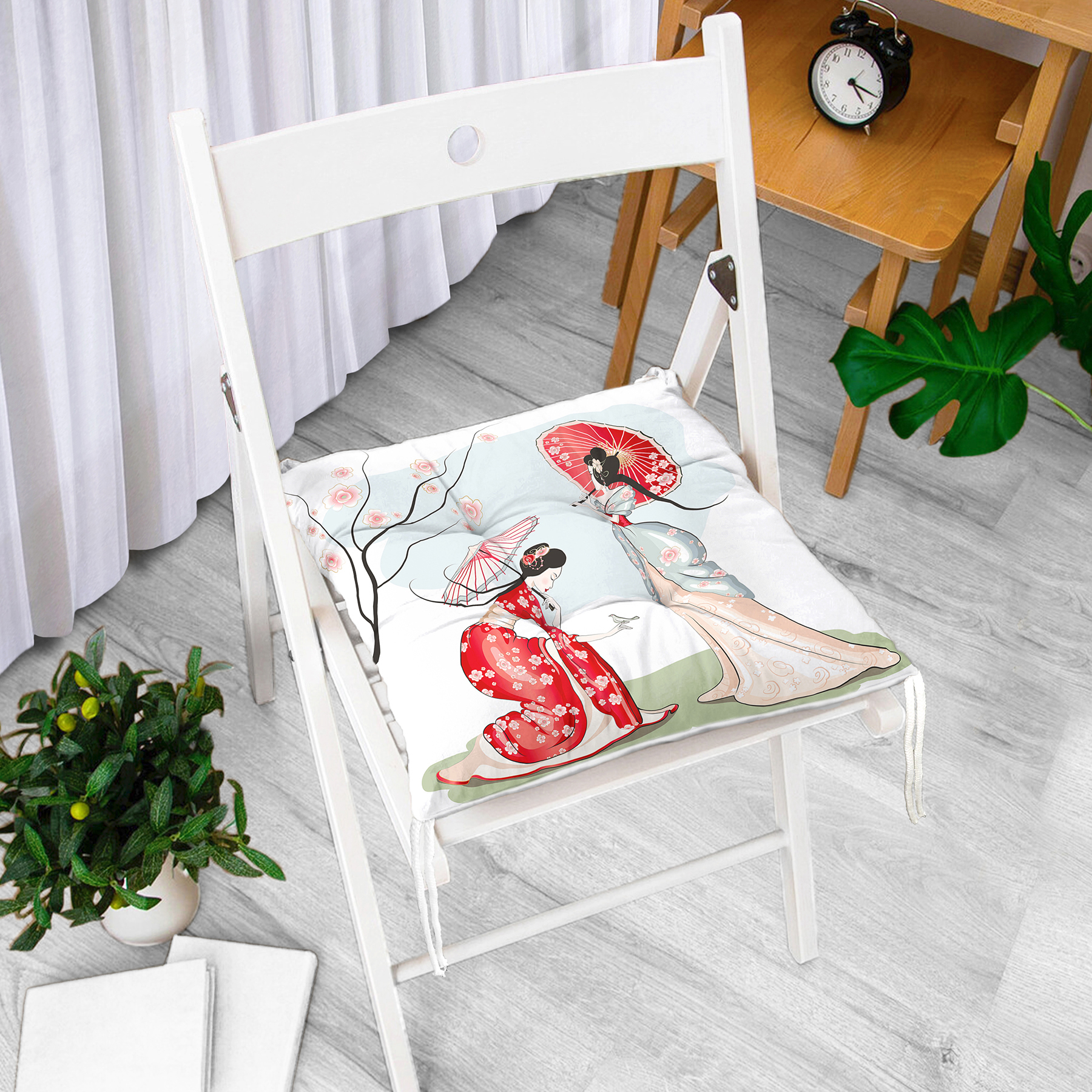 Dal Detaylı Şemsiyeli Japon Kızlar Modern Pofuduk Sandalye Minderi Realhomes