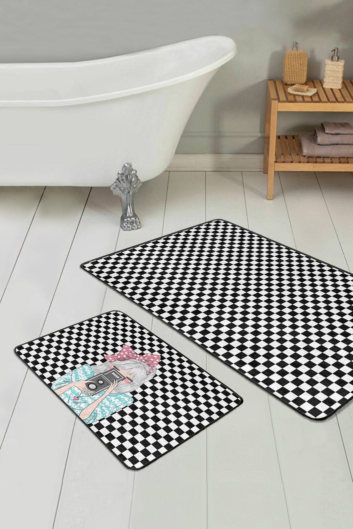 Dama Tasarım Fotoğraf Çeken Kız Motifli 2'li Kaymaz Tabanlı Banyo & Mutfak Paspas Takımı Realhomes