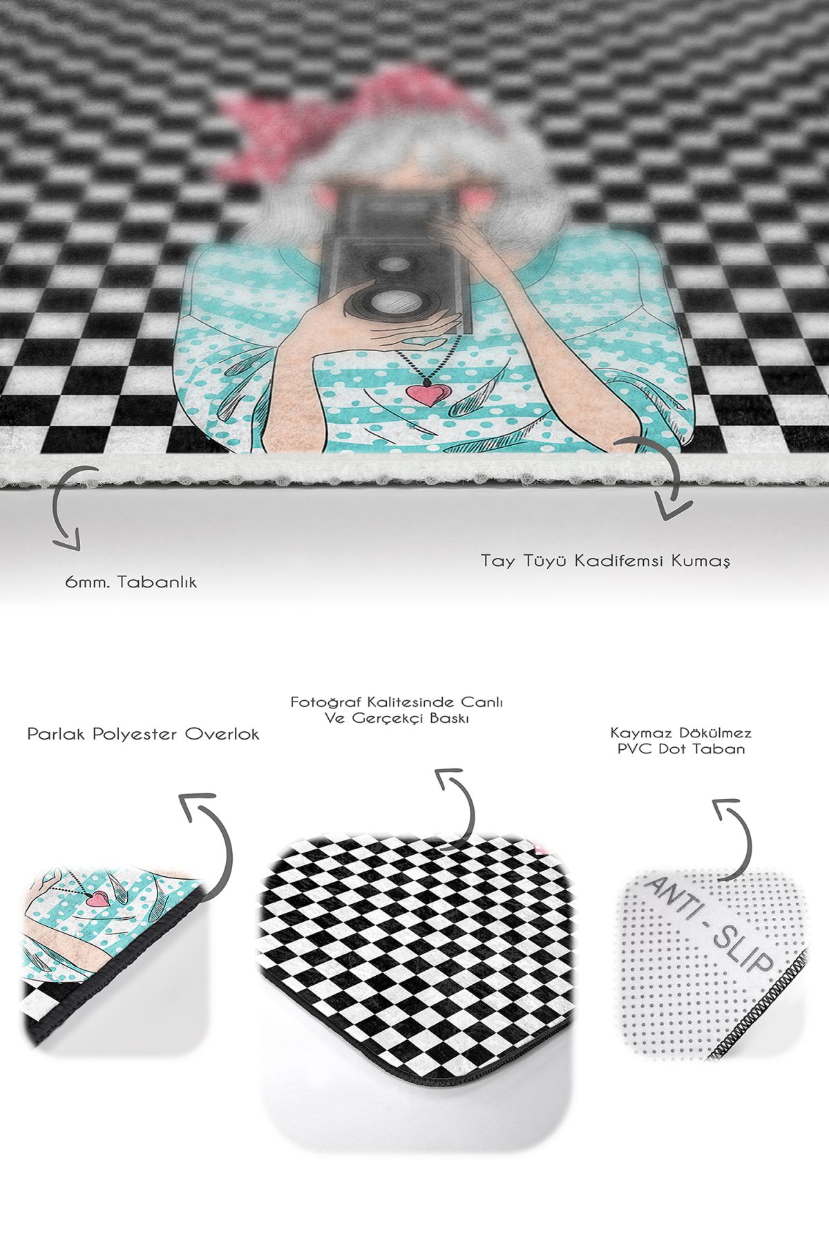 Dama Tasarım Fotoğraf Çeken Kız Motifli 2’li Kaymaz Tabanlı Banyo & Mutfak Paspas Takımı
