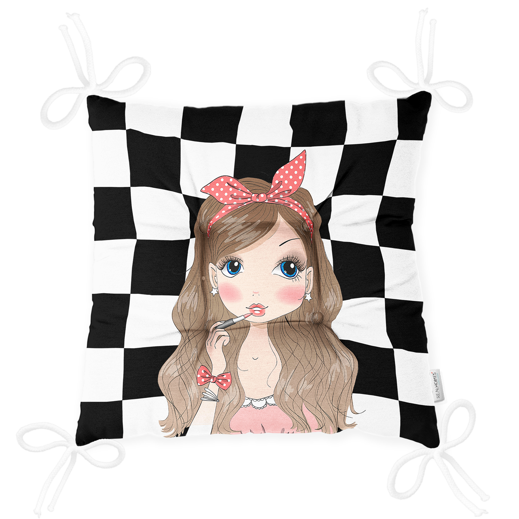 Dama Zeminli Fashion Girl Tasarımlı Dijital Baskılı Modern Pofuduk Sandalye Minderi