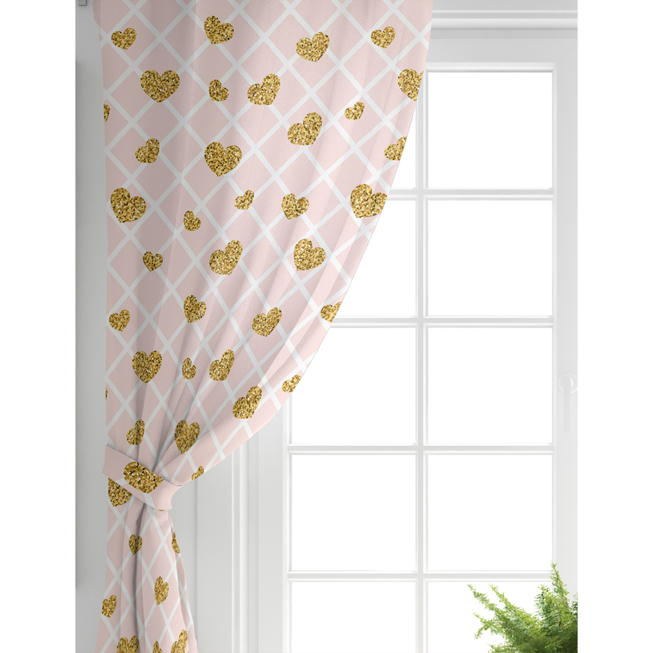 Damalı Pudra Renkli Altın Kalpler Özel Tasarım Bebek Odası Fon Perde