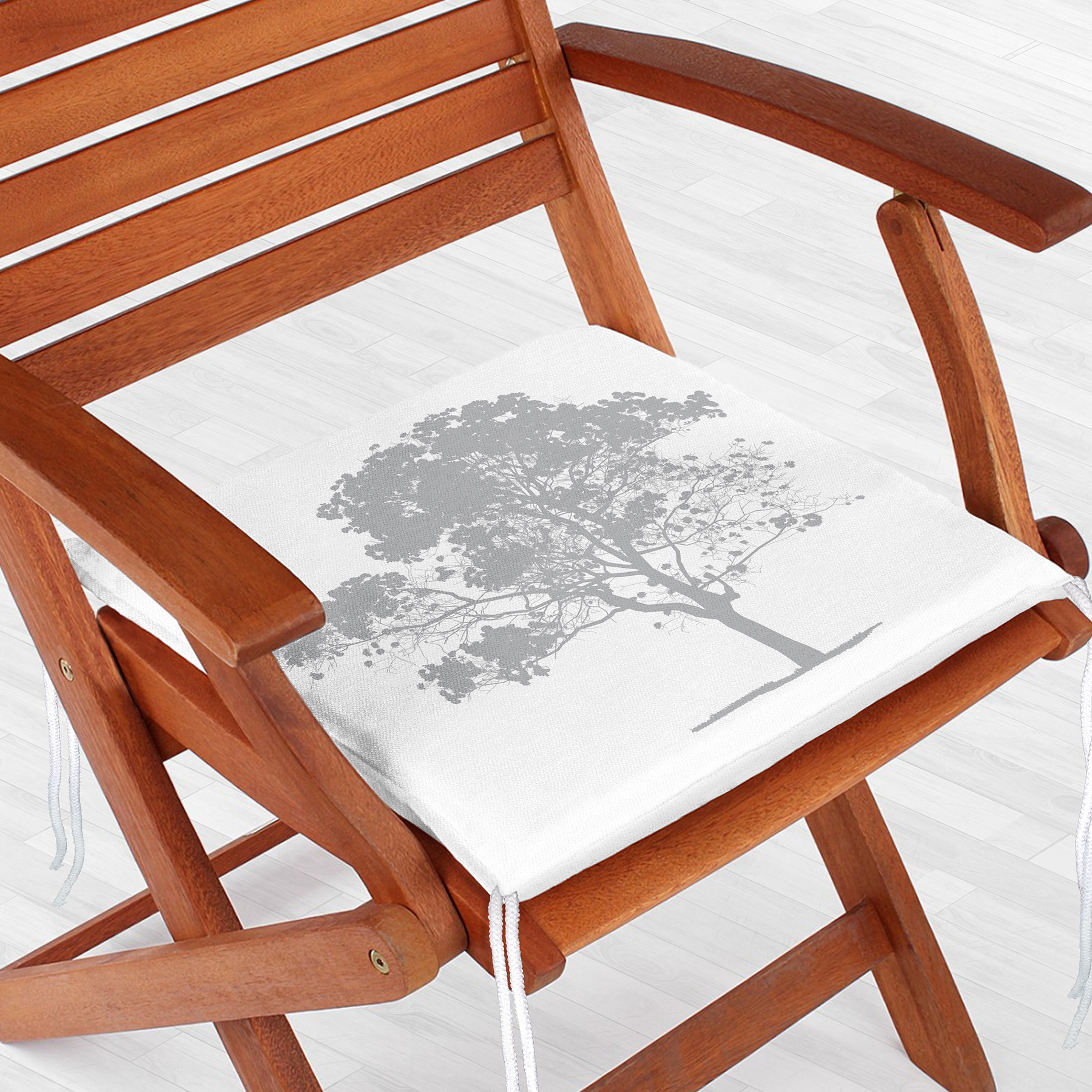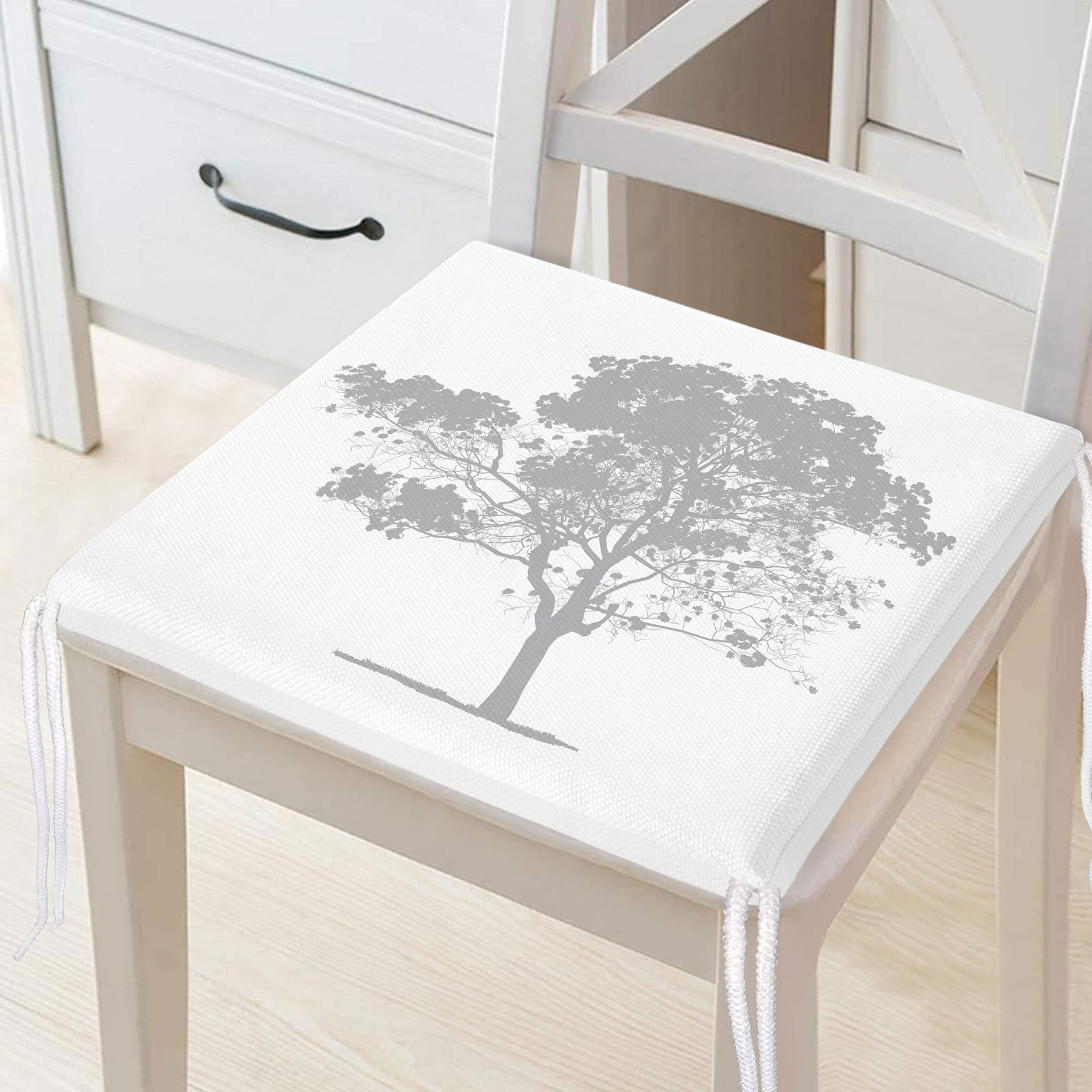 Dekoratif Beyaz Zemimde Gri Ağaç Desenli Fermuarlı Sandalye Minderi