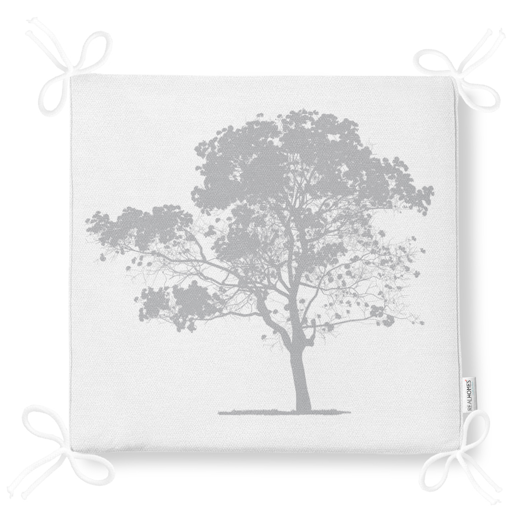 Dekoratif Beyaz Zemimde Gri Ağaç Desenli Fermuarlı Sandalye Minderi Realhomes