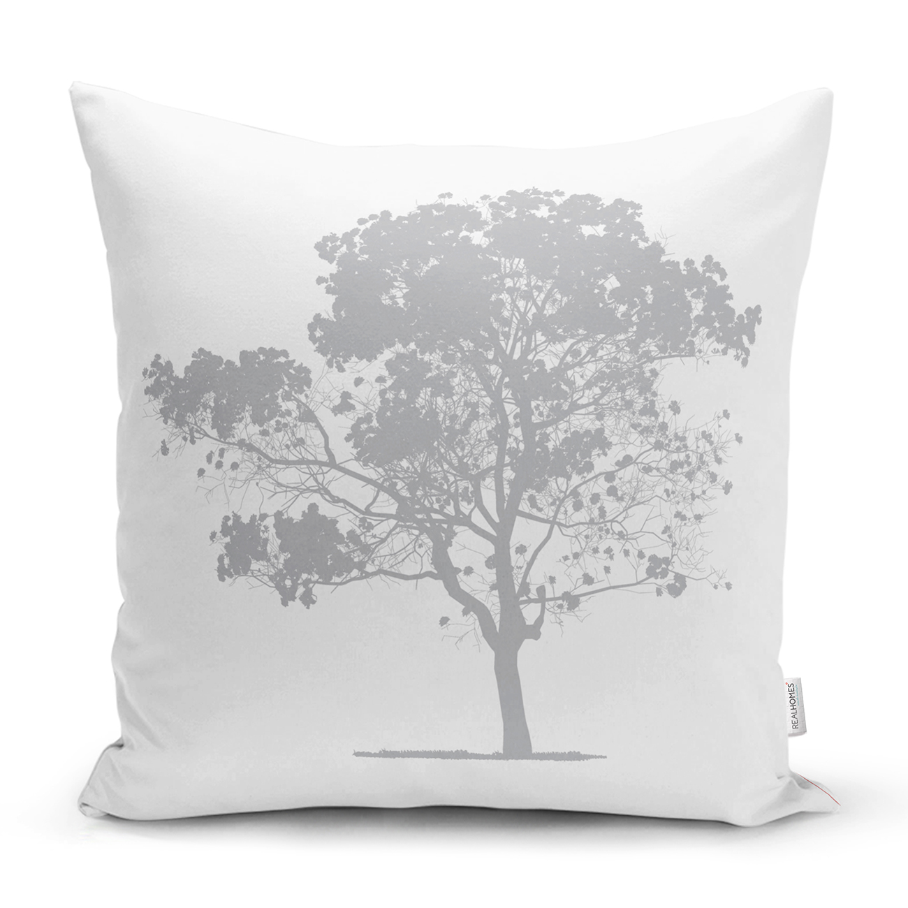 Dekoratif Beyaz Zemimde Gri Ağaç Desenli Kırlent Kılıfı Realhomes