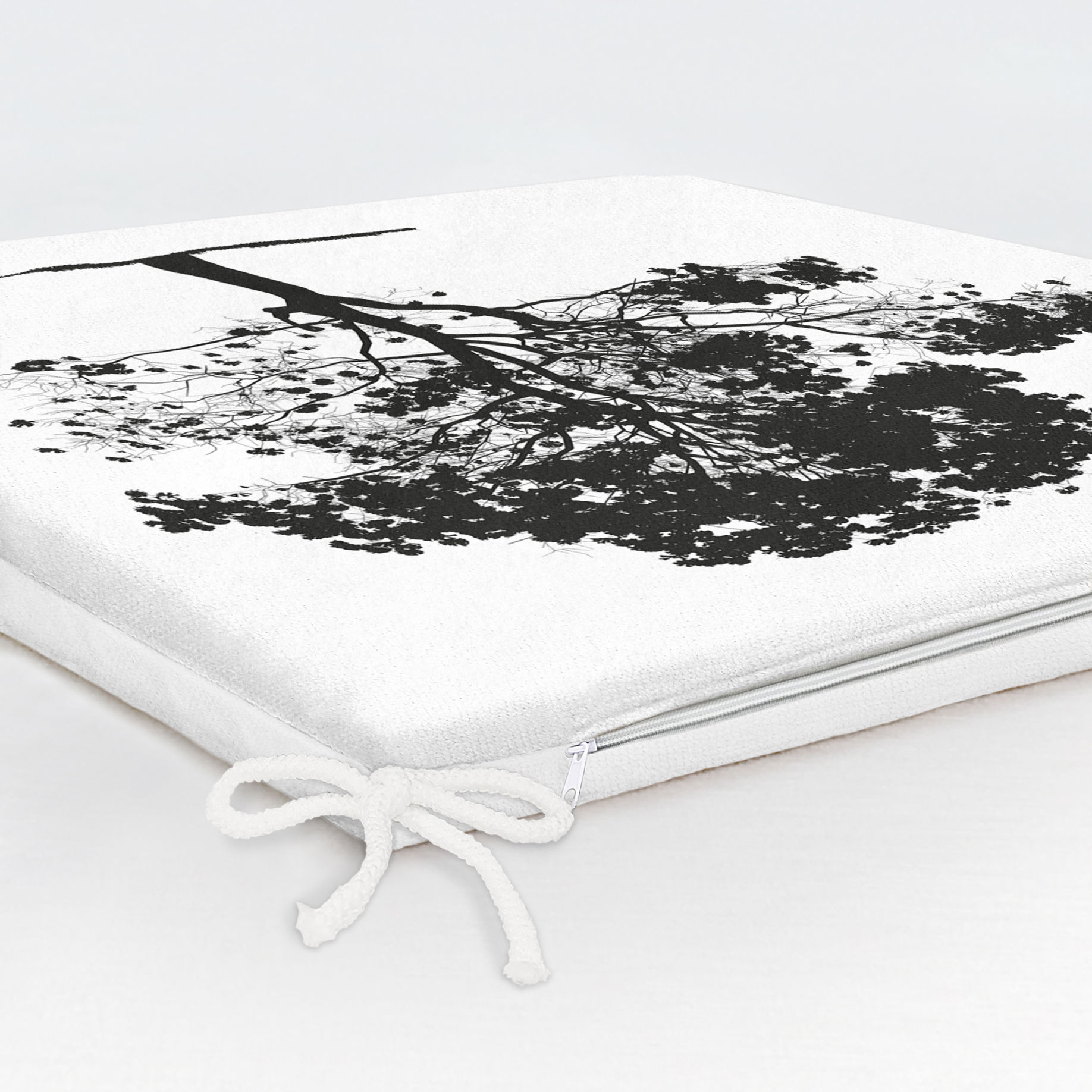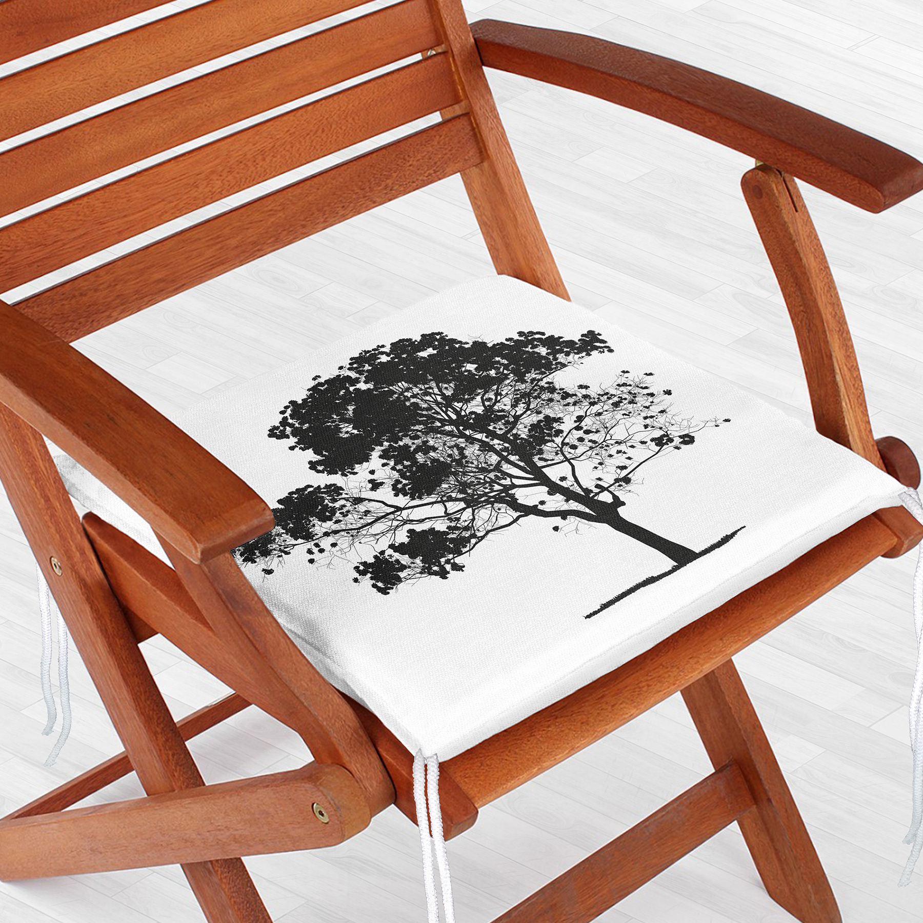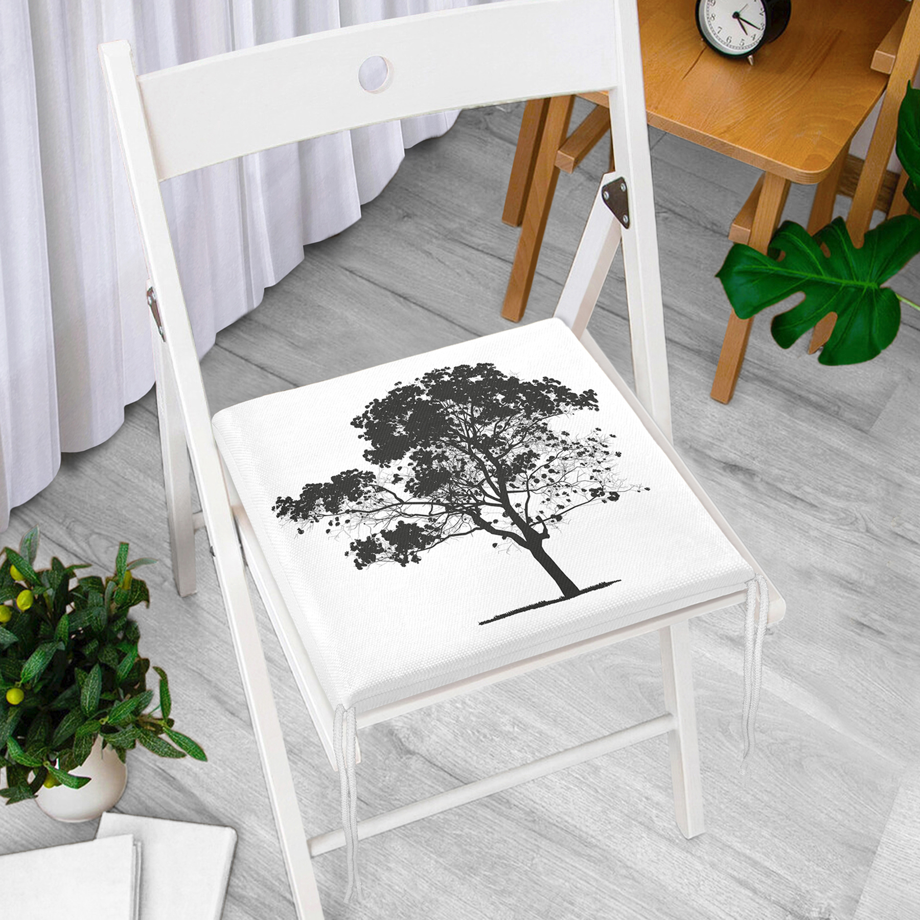 Dekoratif Doğa Çizimli Ağaç Motifli Fermuarlı Sandalye Minderi