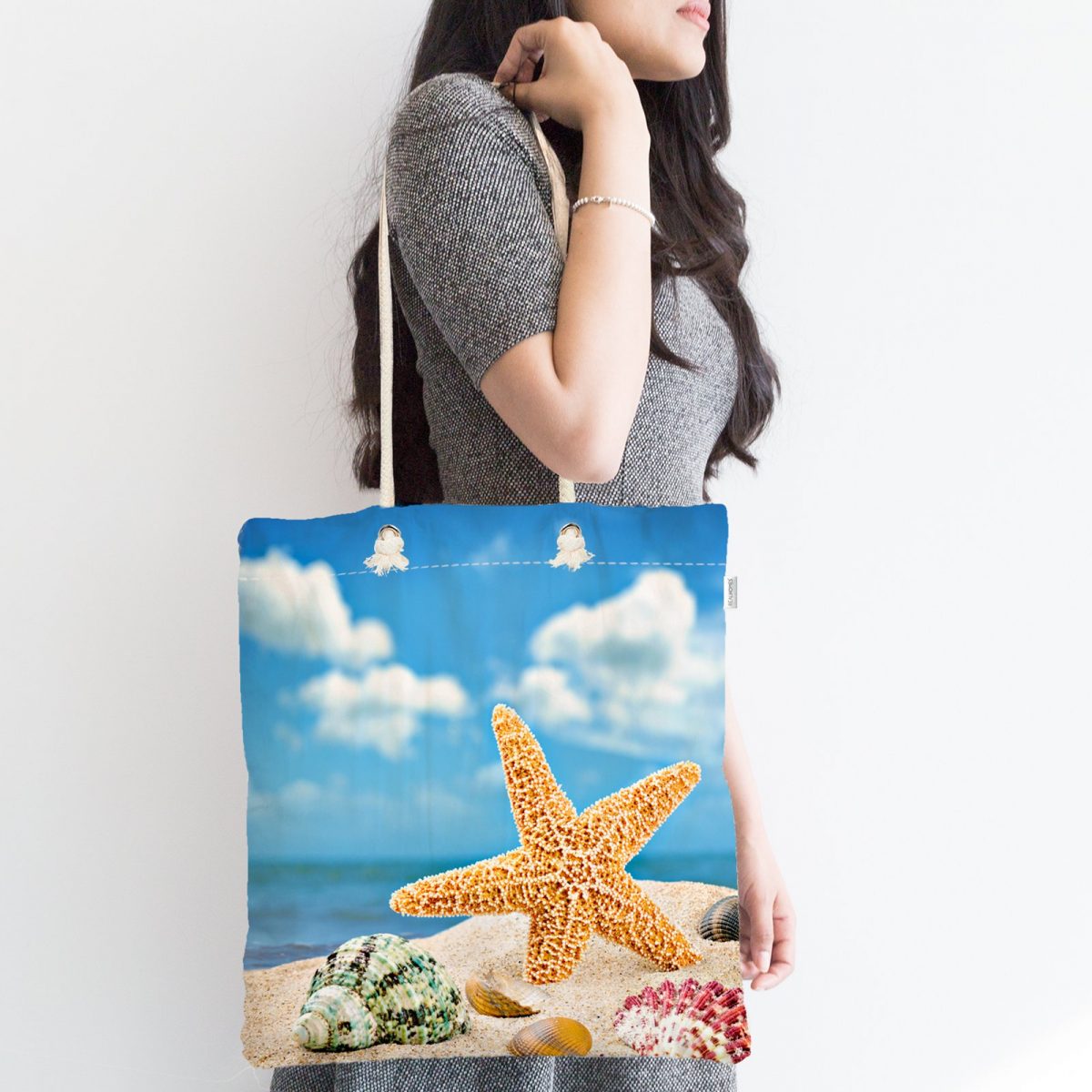 Deniz Yıldızı Özel Tasarımlı Fermuarlı Bez Kumaş Çantası