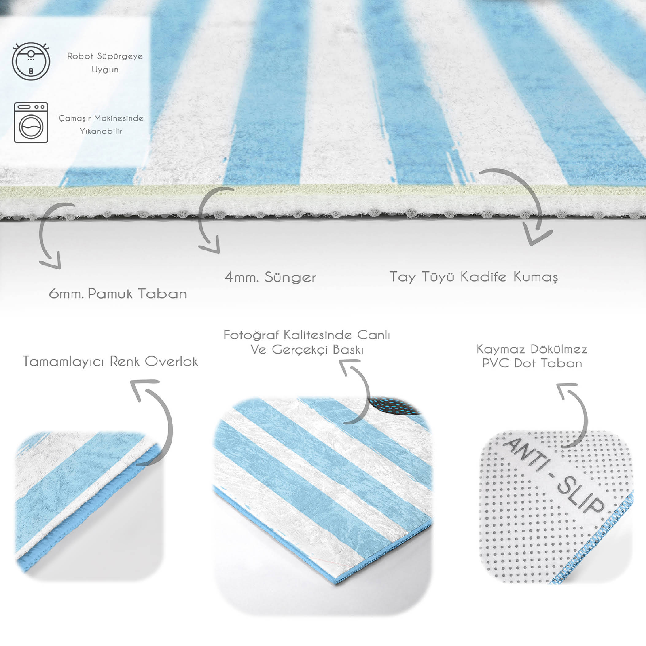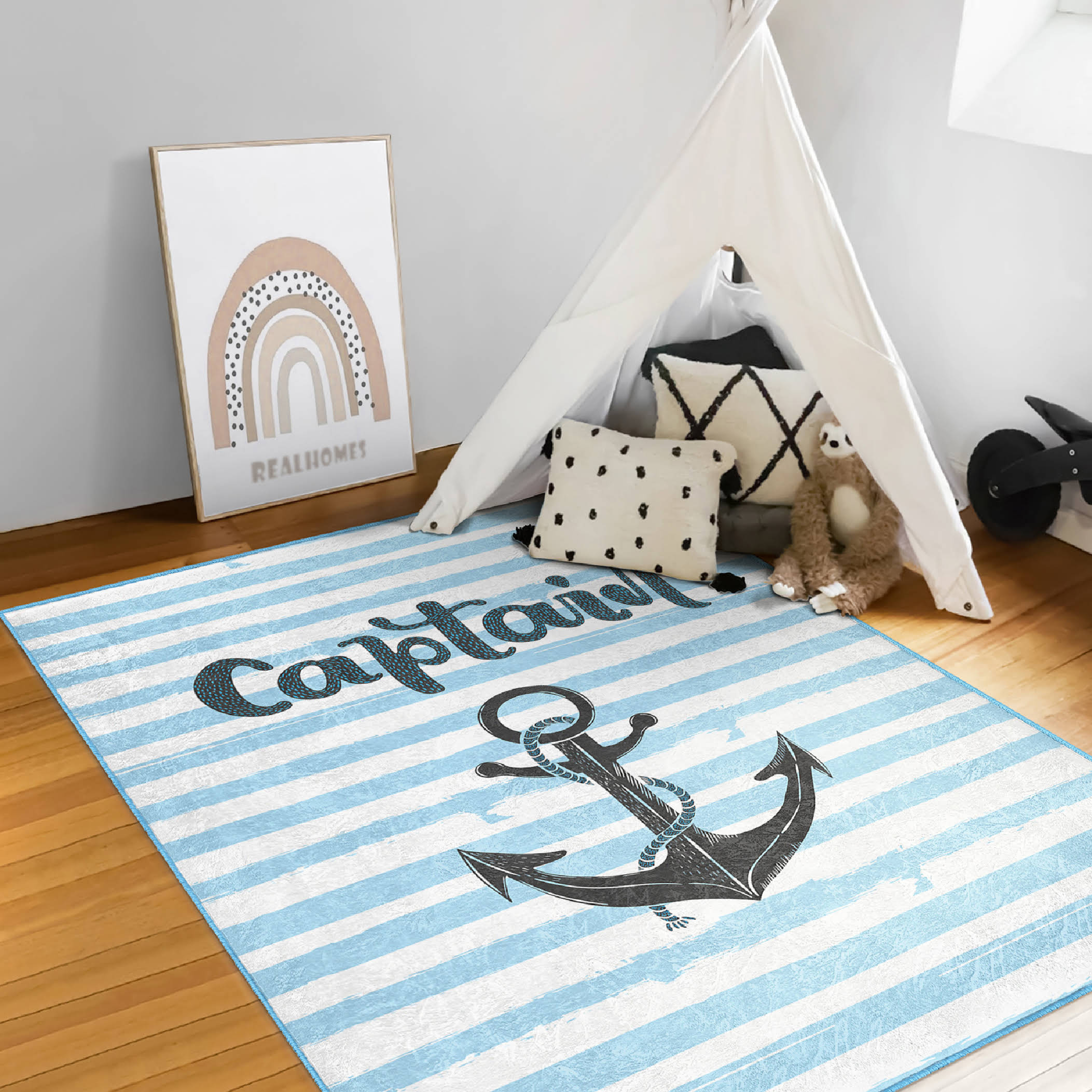 Denizci Motifli Çocuk & Genç Odası Makinede Yıkanabilir Kaymaz Tabanlı Dekoratif Pamuk Tabanlı Dikdörtgen & Kare Çocuk Halısı