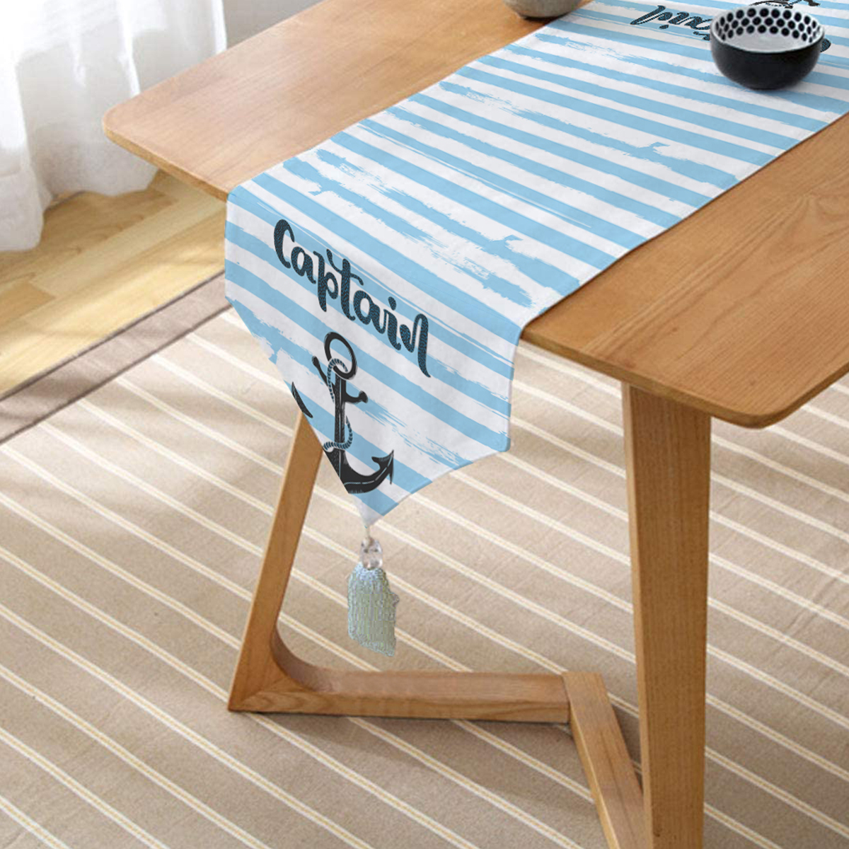Denizci Motifli Dijital Baskılı Püsküllü Şönil Üçgen Runner Realhomes