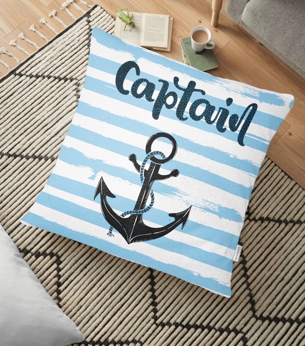 Denizci Motifli Dijital Baskılı Yer Minderi – 70 x 70 cm