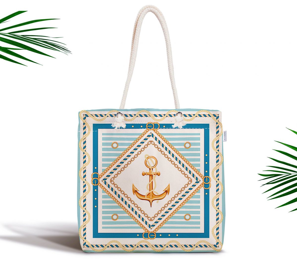Denizci Motifli Özel Tasarım Dijital Baskılı Fermuarlı Plaj Çantası