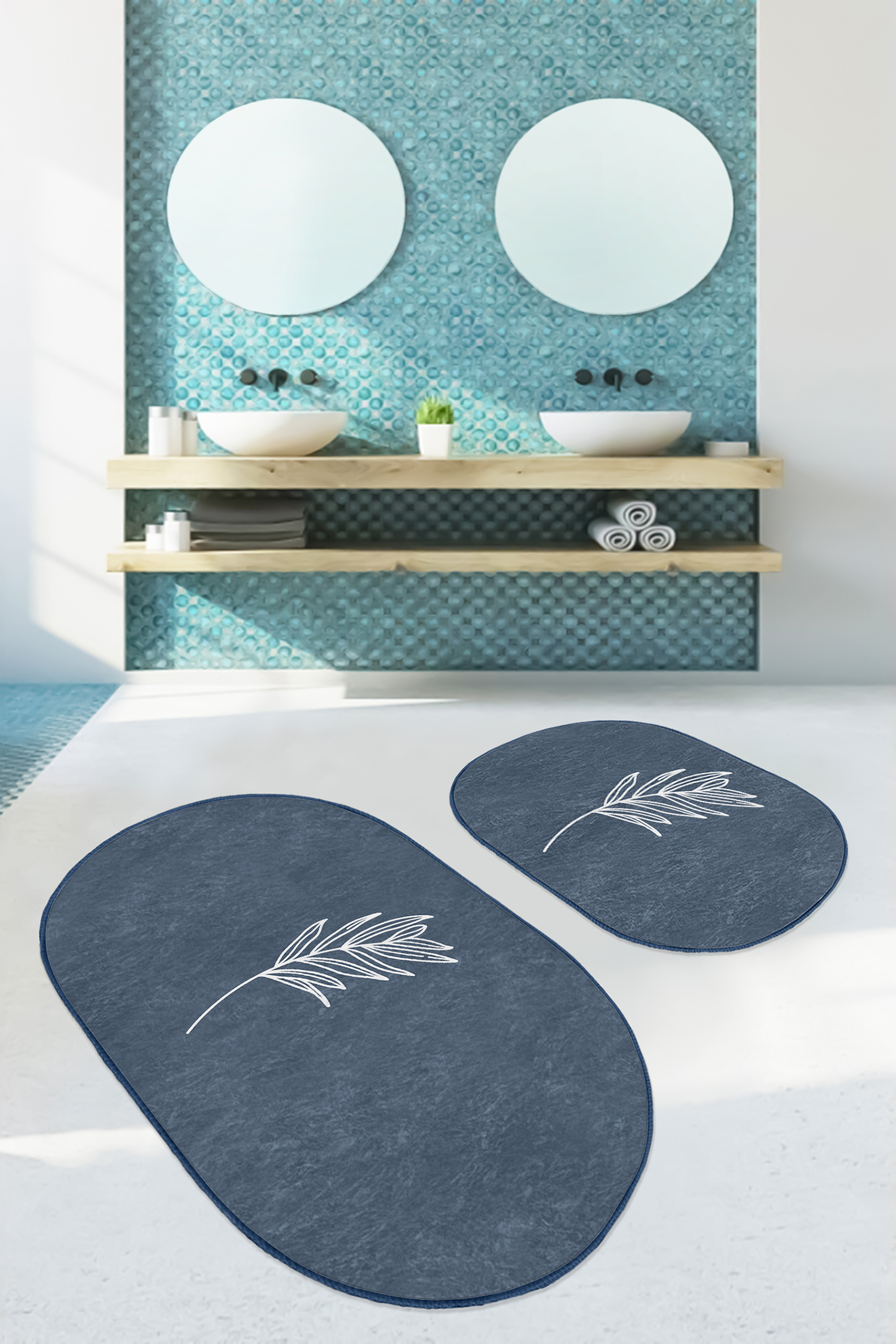 RealHomes Dijital Baskılı Kaymaz Tabanlı 2’li Oval Banyo Paspası, kumaş seçimi ve dikiş detaylarıyla şık bir dekorasyon öğesi olarak kullanımınıza sunulmaktadır. Her bir desen RealHomes tasarımcıları tarafından özenle tasarlanmış ve satışa sunulmuştur. Fotoğraf kalitesinde canlı ve gerçekçi baskılarımız yıkamaya ve kullanıma bağlı olarak solma yapmaz, yıllar boyu ilk günkü özelliğini korur.