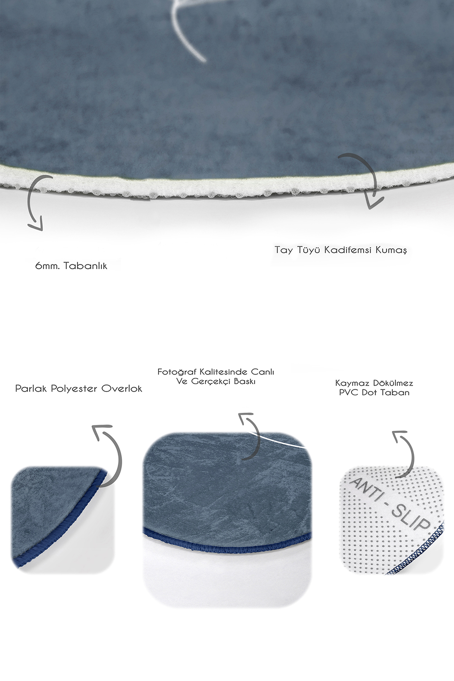 Tabanlık ve Dolgu: 6 mm Kaymaz dokuma tabanlıdır.