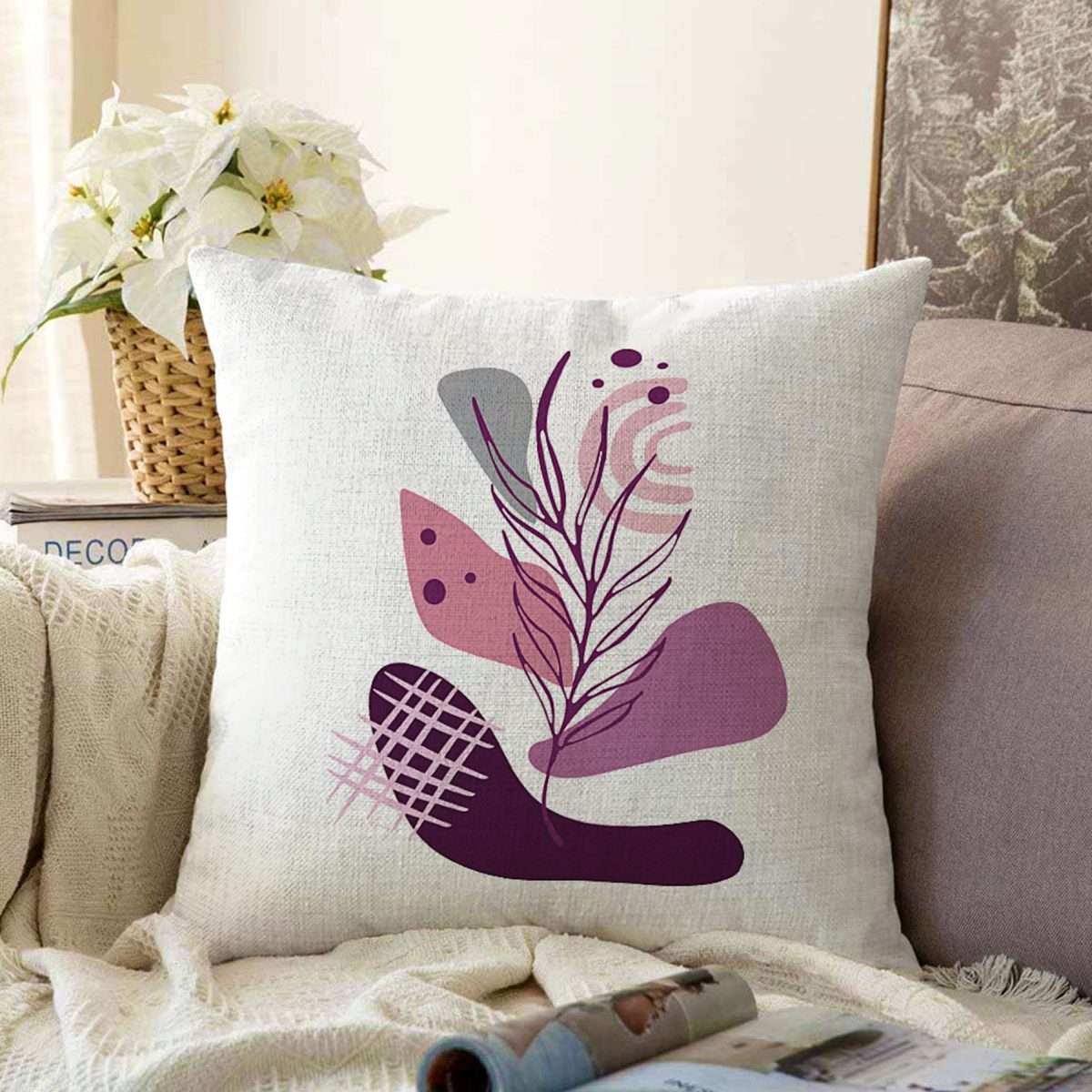Eflatun Renkli Onedraw Çiçek Tasarımlı Modern Raşel Kadife Yastık Kırlent Kılıfı