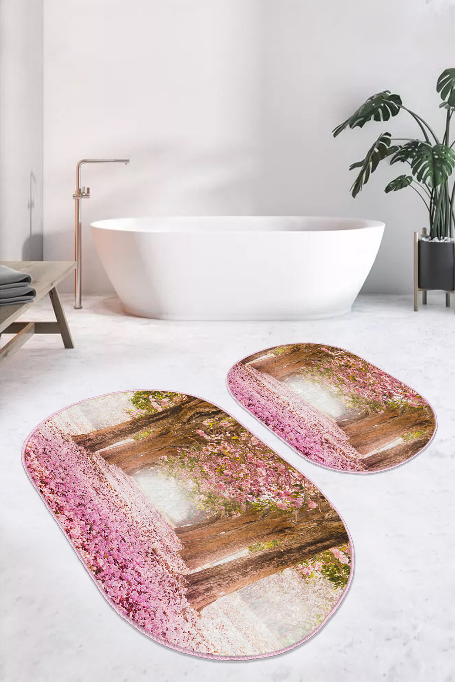 RealHomes Dijital Baskılı Kaymaz Tabanlı 2’li Oval Banyo Paspası, kumaş seçimi ve dikiş detaylarıyla şık bir dekorasyon öğesi olarak kullanımınıza sunulmaktadır. Her bir desen RealHomes tasarımcıları tarafından özenle tasarlanmış ve satışa sunulmuştur. Fotoğraf kalitesinde canlı ve gerçekçi baskılarımız yıkamaya ve kullanıma bağlı olarak solma yapmaz, yıllar boyu ilk günkü özelliğini korur.