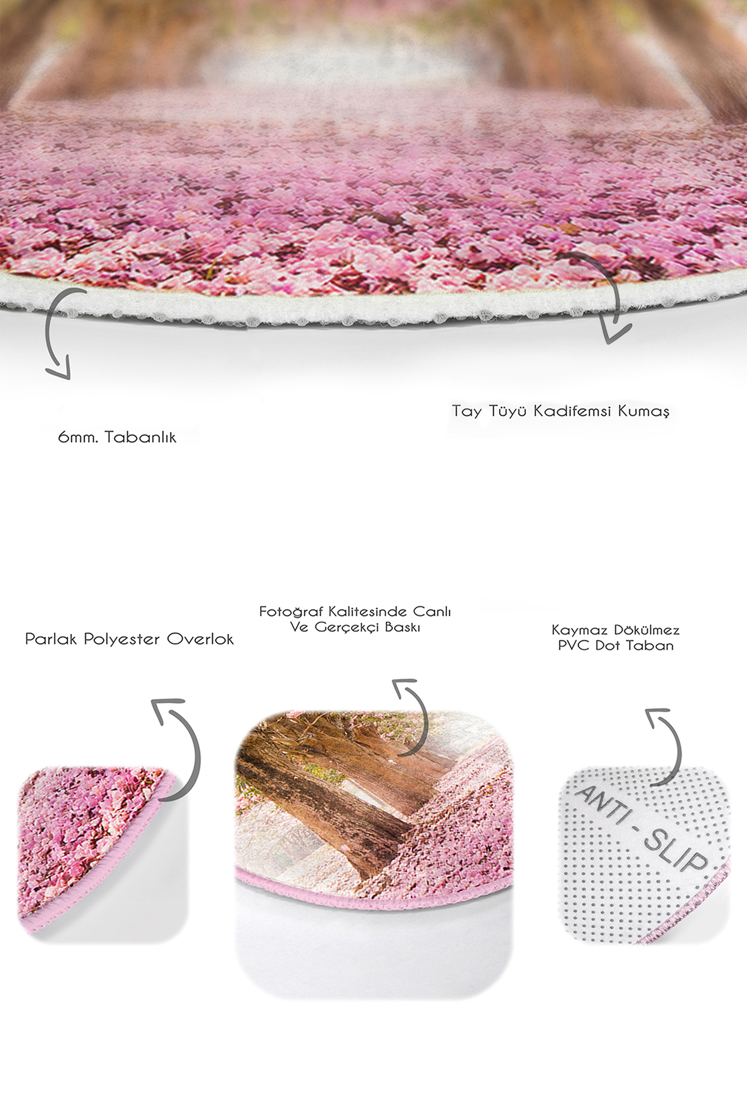 Tabanlık ve Dolgu: 6 mm Kaymaz dokuma tabanlıdır.