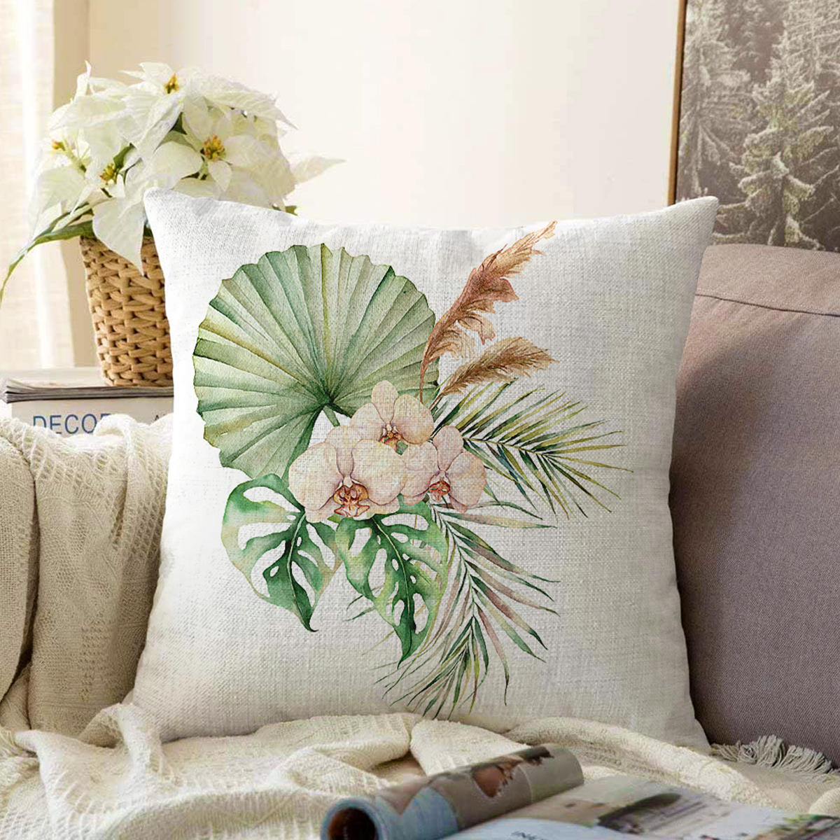 Egzotik Yaprak Tasarımlı Dijital Baskılı Modern Raşel Kadife Yastık Kırlent Kılıfı
