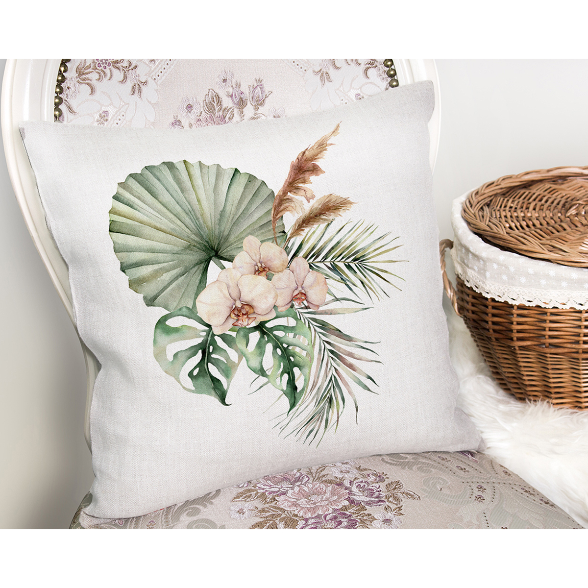 Egzotik Yaprak Tasarımlı Dijital Baskılı Modern Yastık Kırlent Kılıfı