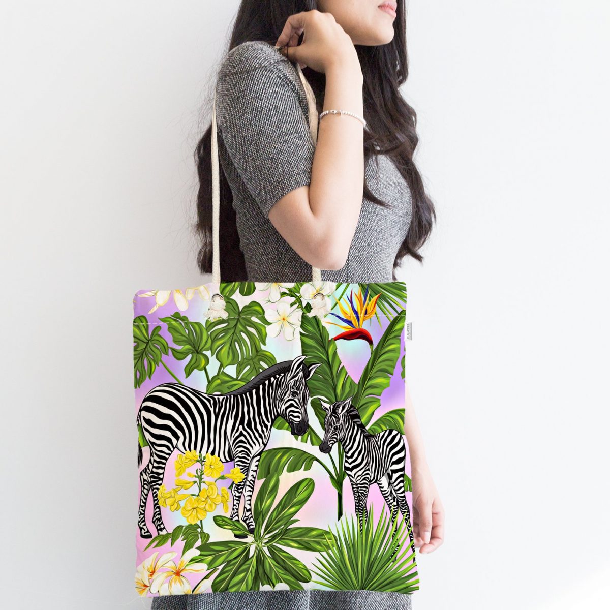 Egzotik Zebra Desenli Modern Fermuarlı Kumaş Çanta