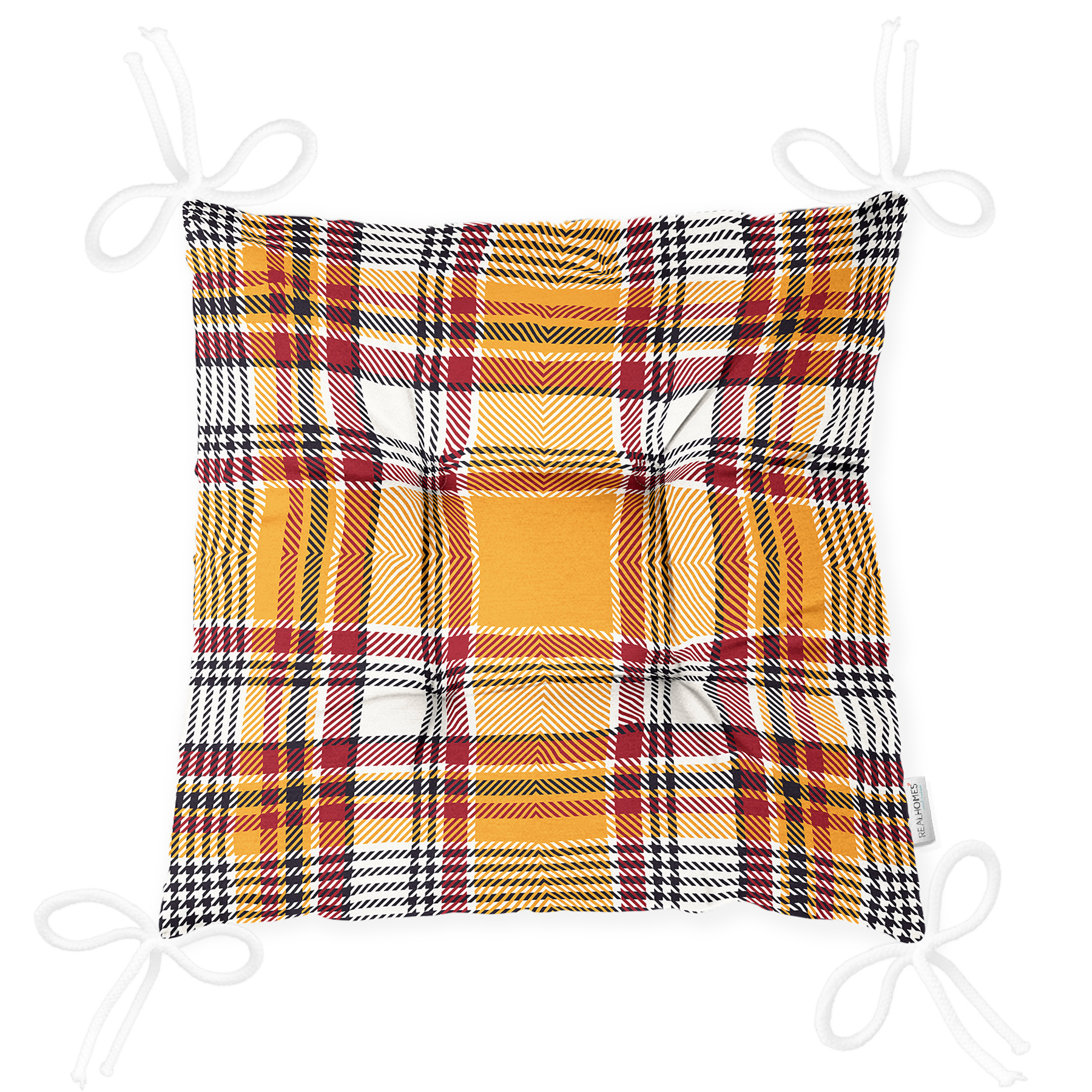 Ekose Desenli Özel Tasarım Pofuduk Sandalye Minderi