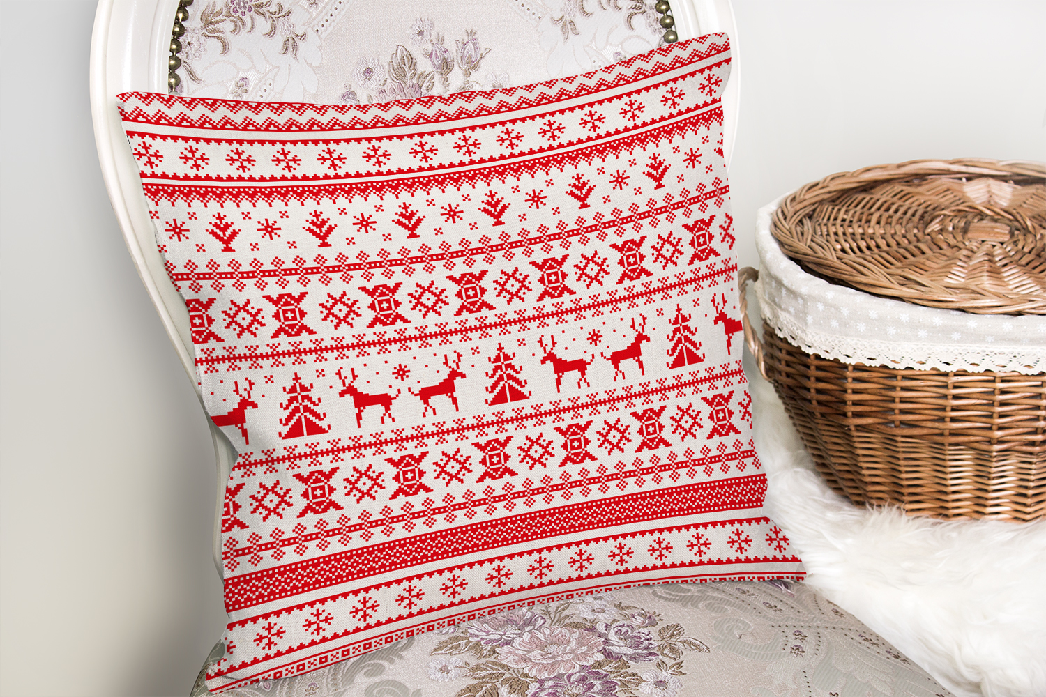 Ekose Dokuma Desenli Yılbaşı Temalı Yastık Kırlent Kılıfı Realhomes