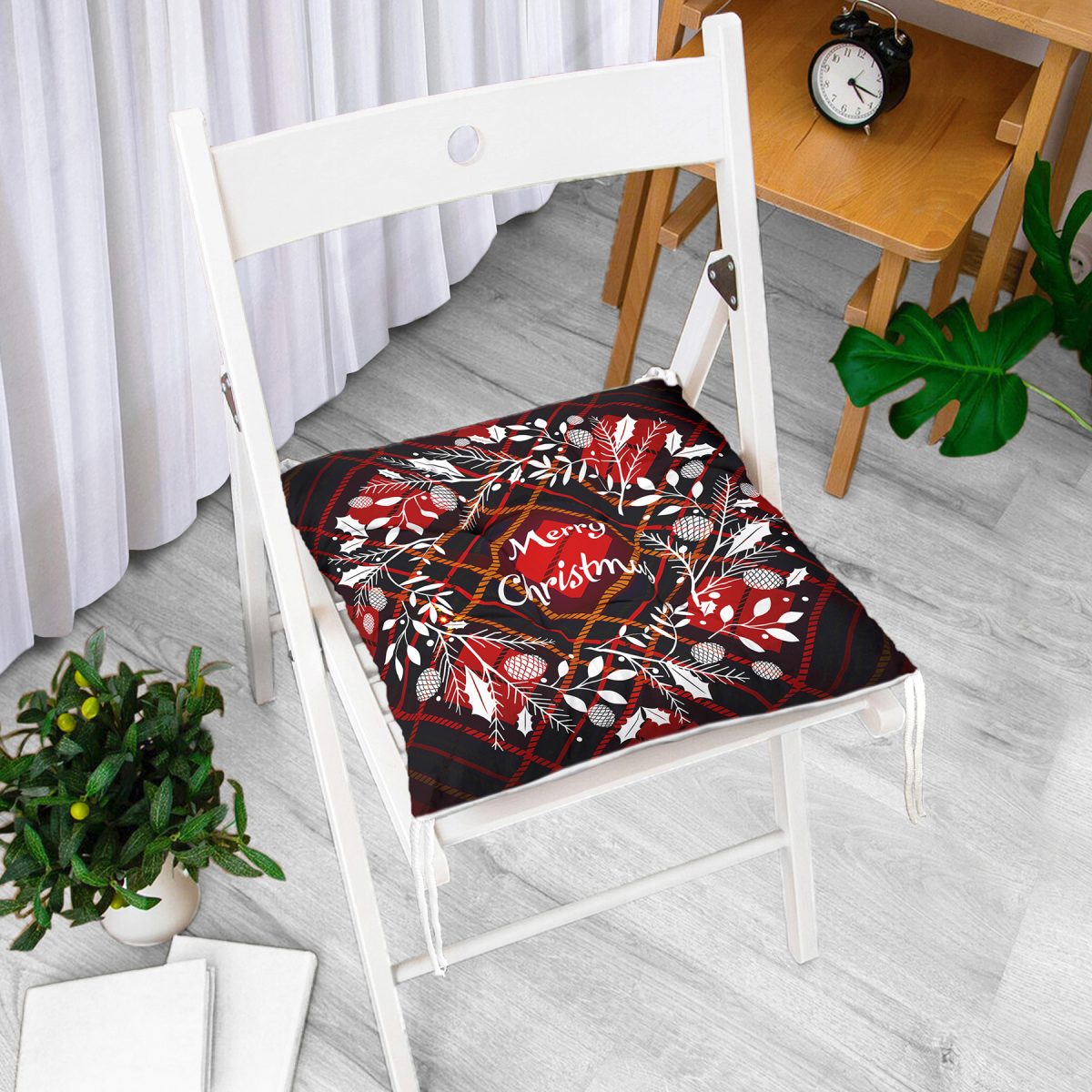 Ekose Merry Christmas Desenli Dijital Baskılı Pofuduk Sandalye Minderi Realhomes
