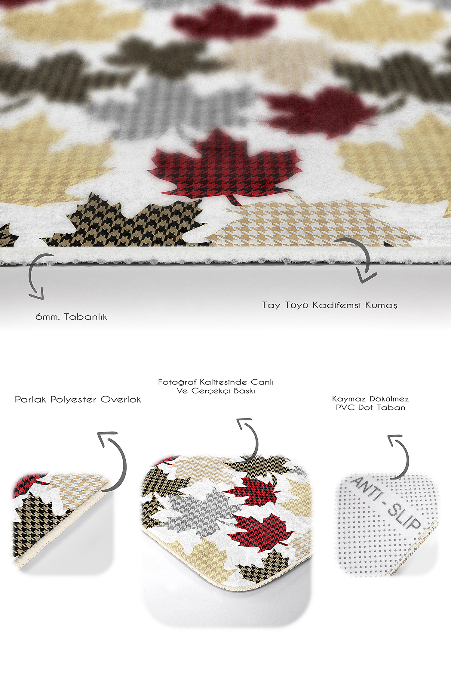 Ekose Yaprak Tasarımlı Yılbaşı Temalı 2’li Kaymaz Tabanlı Banyo & Mutfak Paspas Takımı