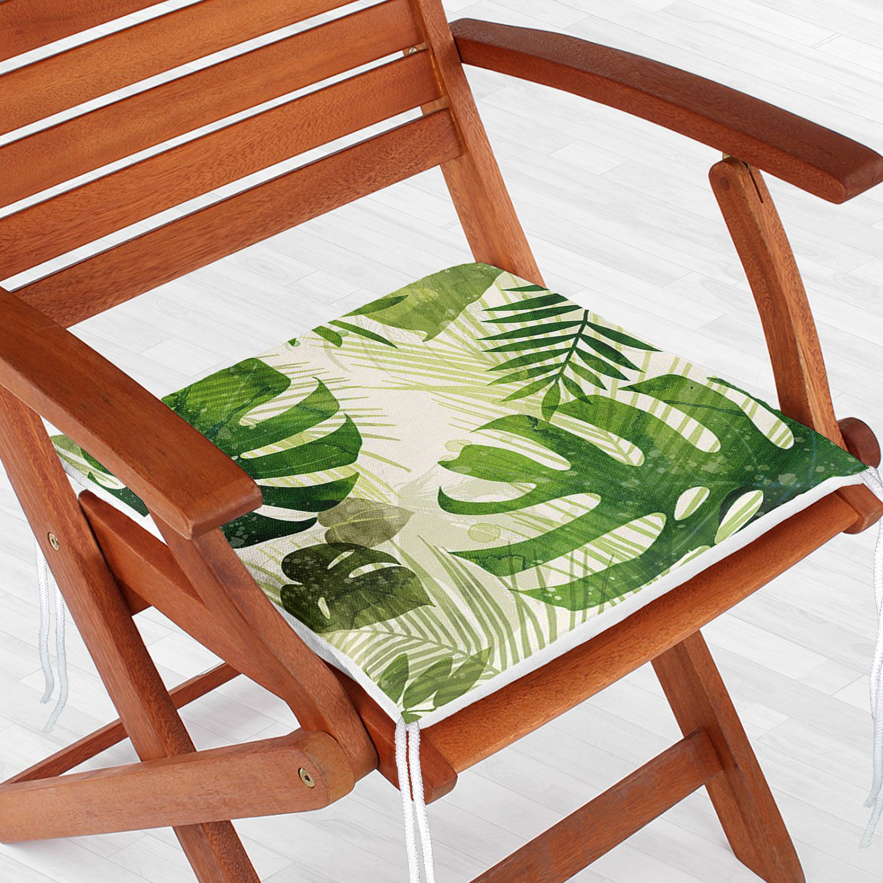 Ekru Zeminde Amazon Yaprakları Özel Tasarım Fermuarlı Sandalye Minderi