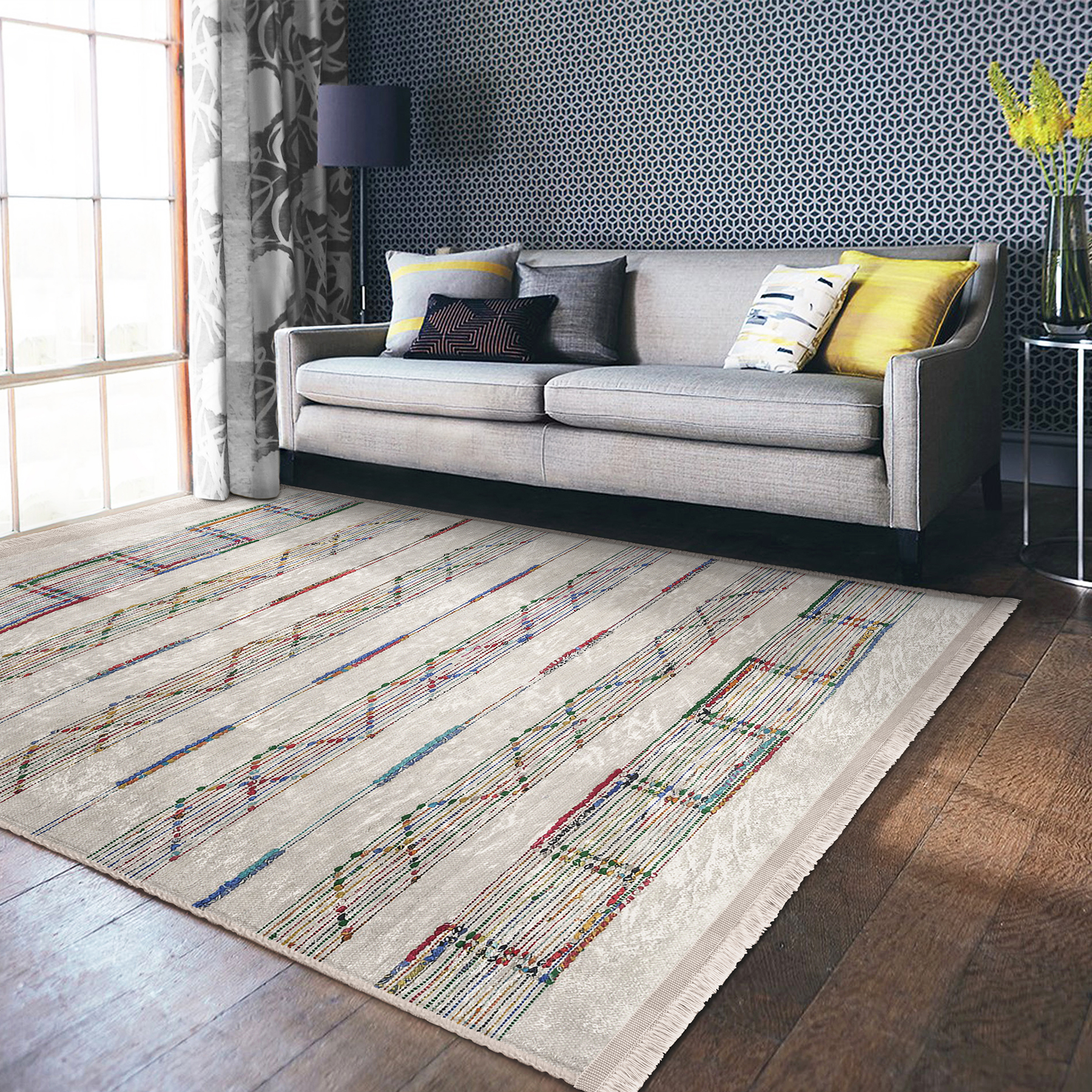RealHomes Dijital Baskılı Kaymaz Tabanlı Deluxe Halılar, kumaş seçimi ve püsküllü dikiş detaylarıyla şık bir dekorasyon öğesi olarak kullanımınıza sunulmaktadır. Her bir desen RealHomes tasarımcıları tarafından özenle tasarlanmış ve satışa sunulmuştur. Fotoğraf kalitesinde canlı ve gerçekçi baskılarımız yıkamaya ve kullanıma bağlı olarak solma yapmaz, yıllar boyu ilk günkü özelliğini korur.