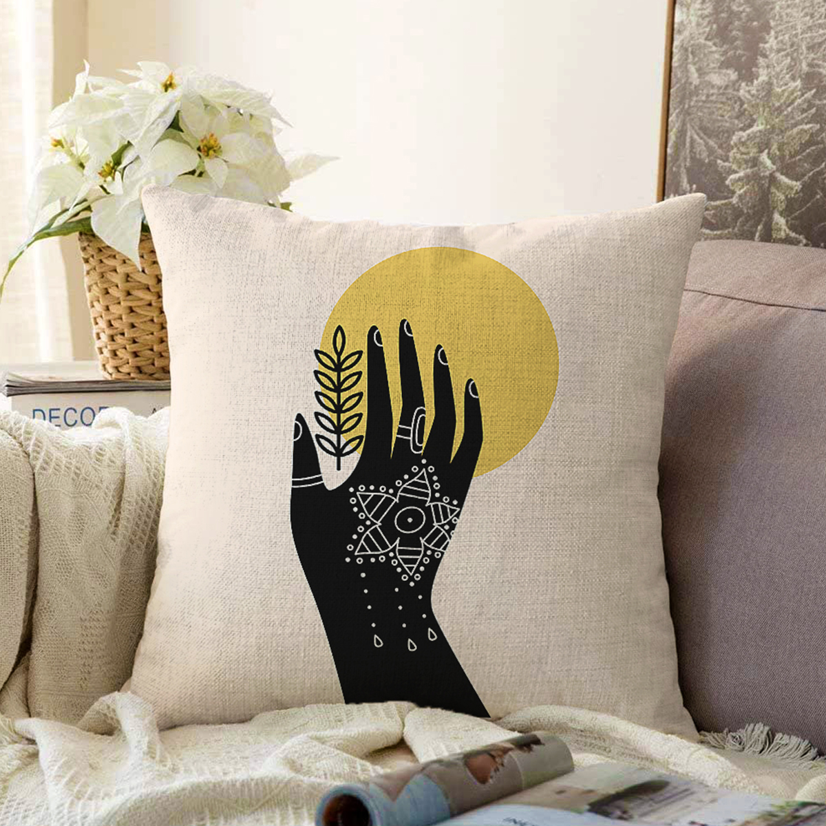 El Silüetli Özel Tasarım Dijital Baskılı Dekoratif Raşel Kadife Yastık Kırlent Kılıfı