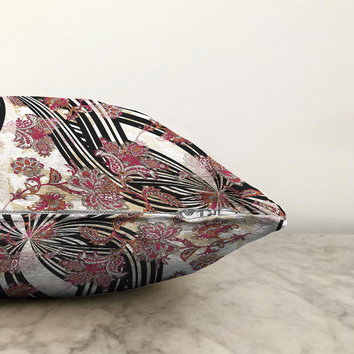 Etnik Çiçek Desenli Özel Tasarım Dijital Baskılı Modern Raşel Kadife Yastık Kırlent Kılıfı