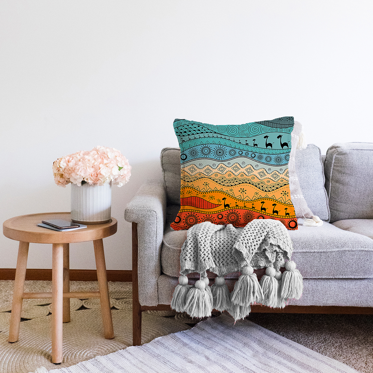 Etnik Desen Tasarımlı Dijital Baskılı Modern Raşel Kadife Yastık Kırlent Kılıfı