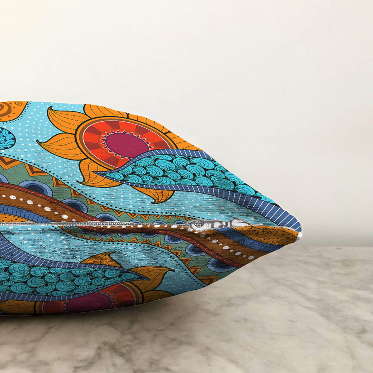 Etnik Desen Tasarımlı Dijital Baskılı Modern Raşel Kadife Yastık Kırlent Kılıfı