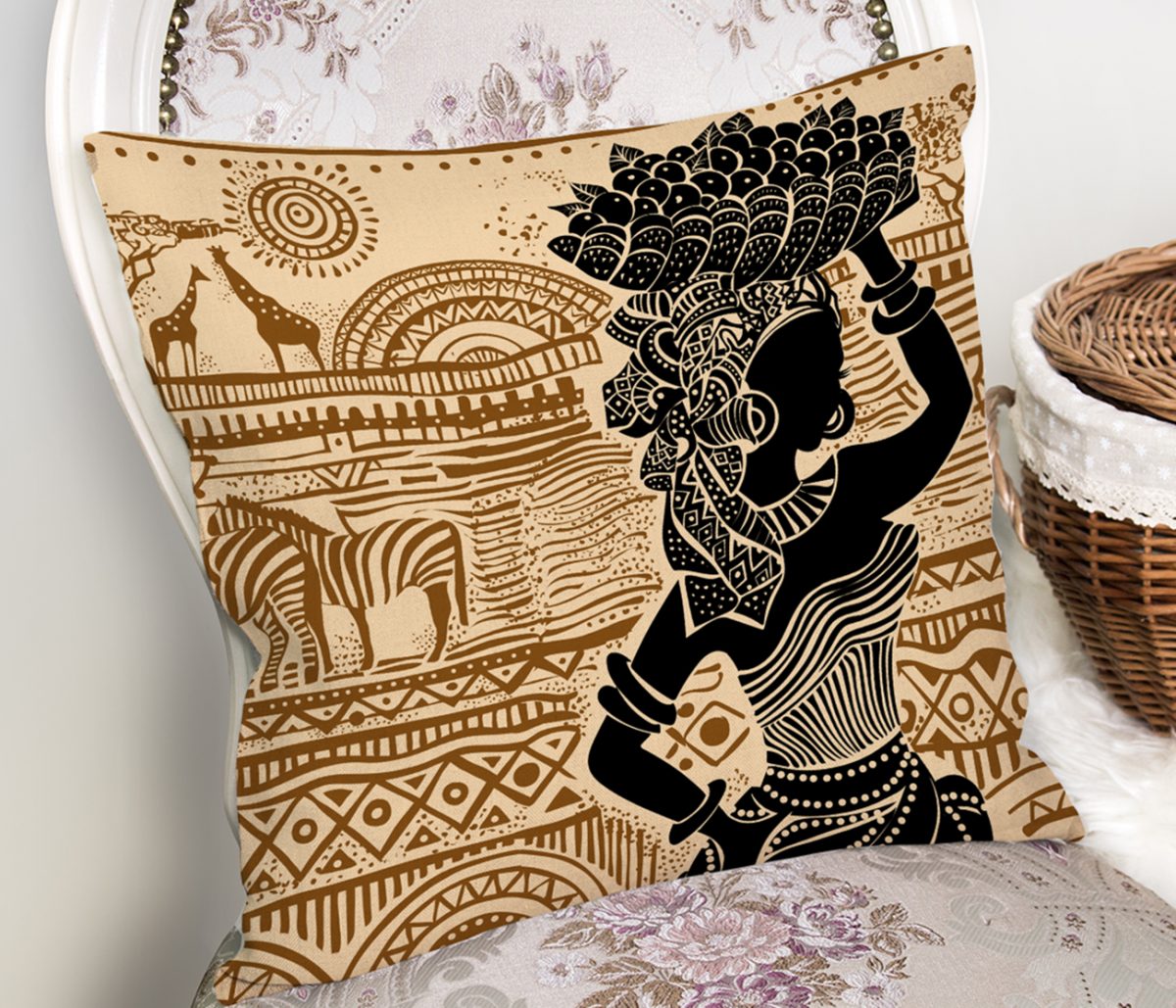 Etnik Desen Zeminli Afrika Kadın Motifli Dekoratif Yastık Kılıfı Realhomes