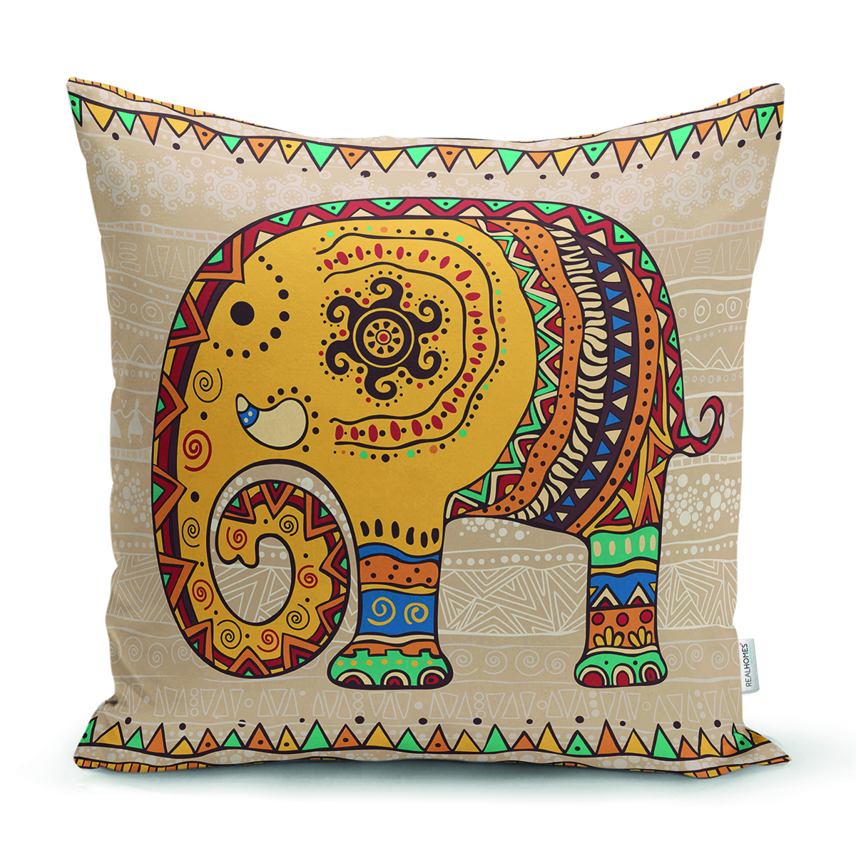Etnik Figürlü Fil Desenli Dijital Baskılı Dekoratif Yastık Kırlent Kılıfı Realhomes