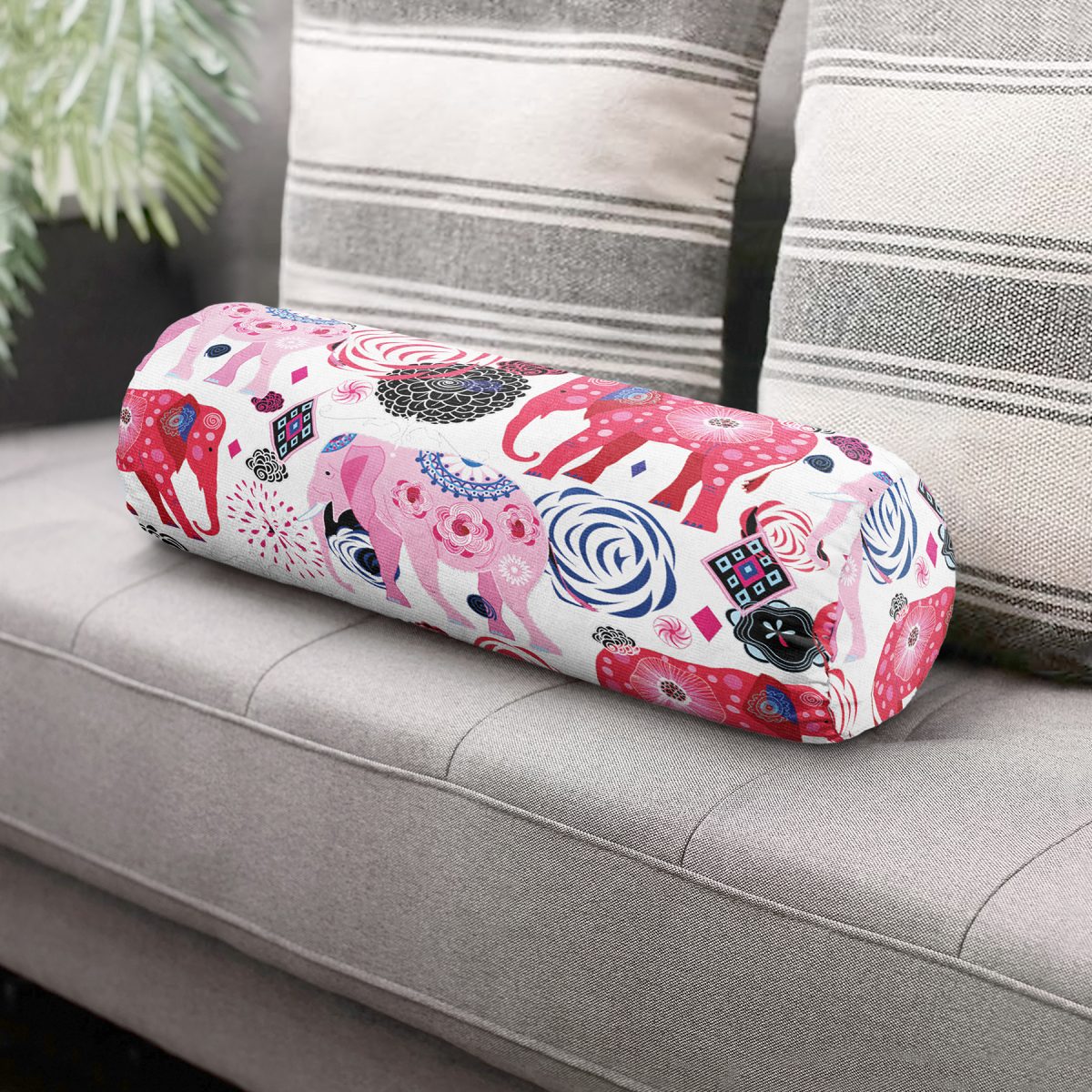 Etnik Filler Özel Tasarımlı Dijital Baskılı İç Dolgulu – Fermuarlı Süet Berjer Silindir Yastık Kırlent
