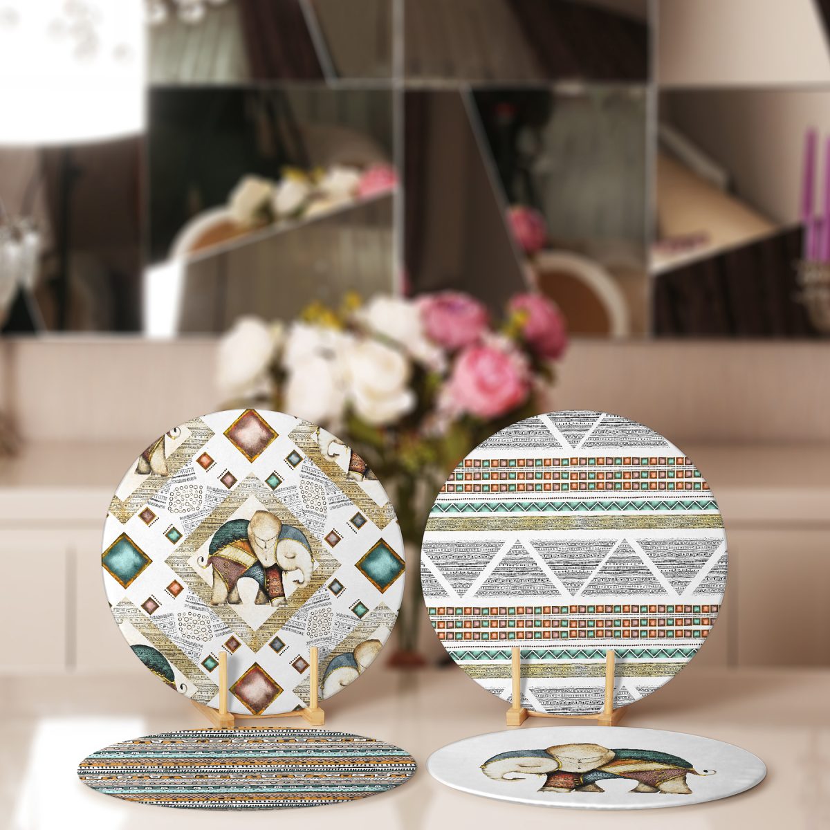 Etnik İskandinav Motifli Fil Tasarımlı Modern Yuvarlak Servis Altlığı & Supla