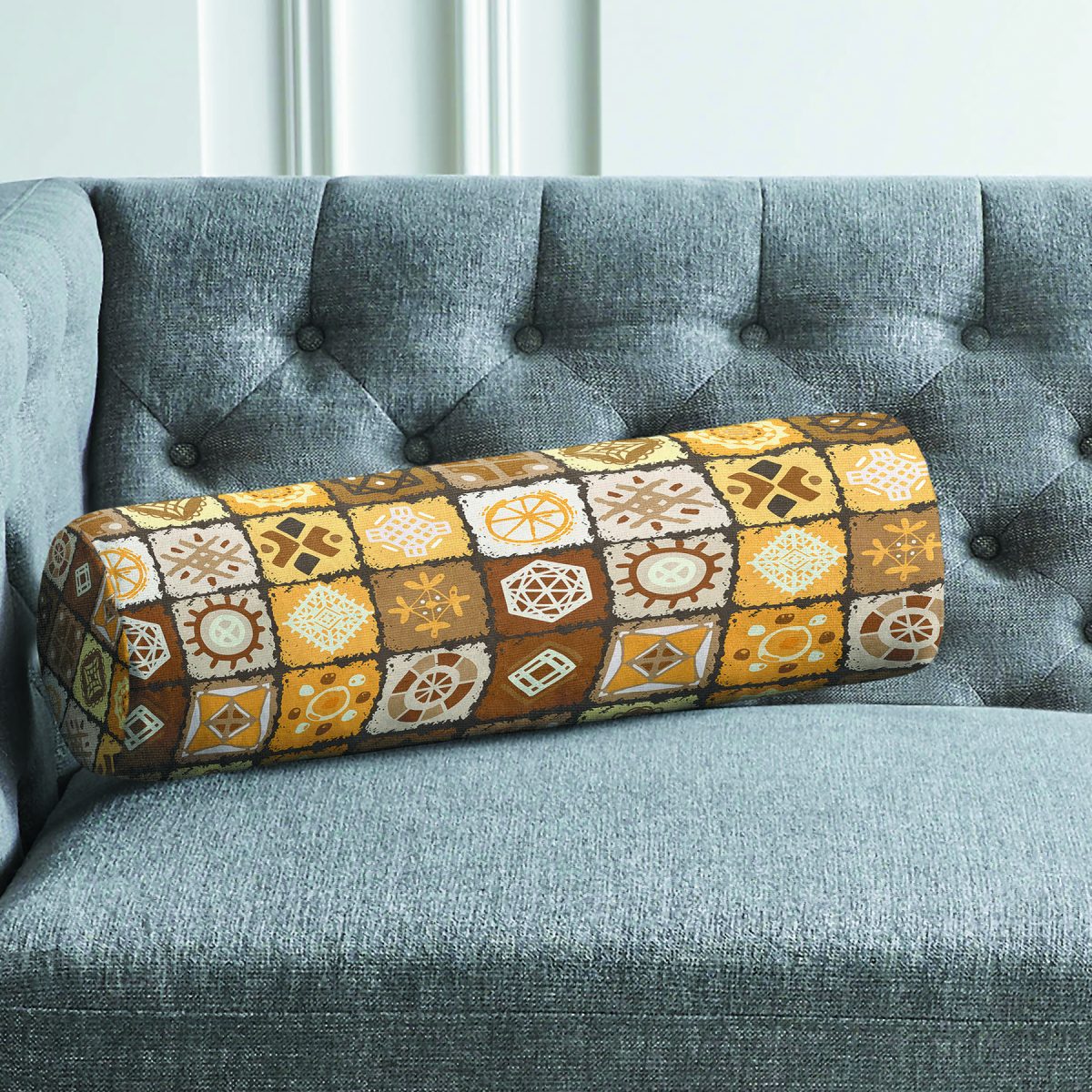 Etnik Kareli Geometrik Çizimli Modern İç Dolgulu Süet Silindir Yastık Kırlent – Bel Yastığı