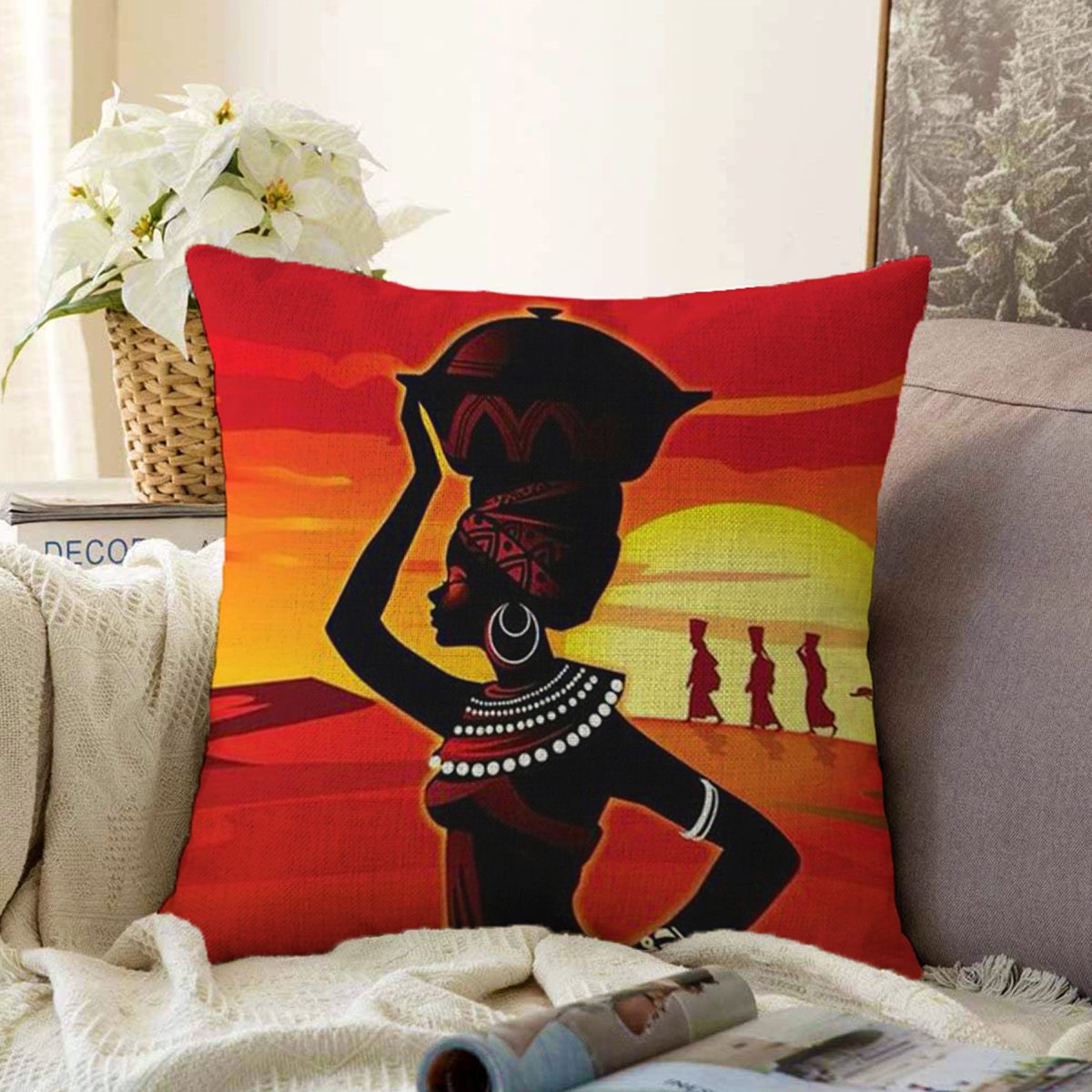 Etnik Siyahi Kadın Temalı Dijital Baskılı Raşel Kadife Yastık Kırlent Kılıfı