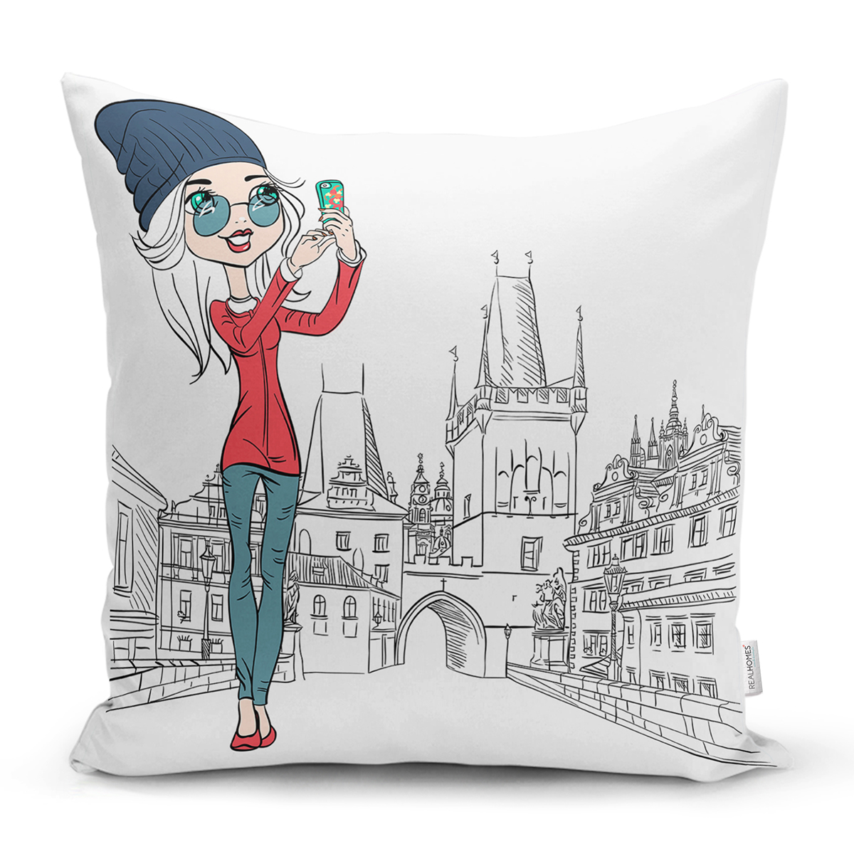 Fashion Çizim Desenli Dijital Baskılı Modern Yastık Kırlent Kılıfı Realhomes
