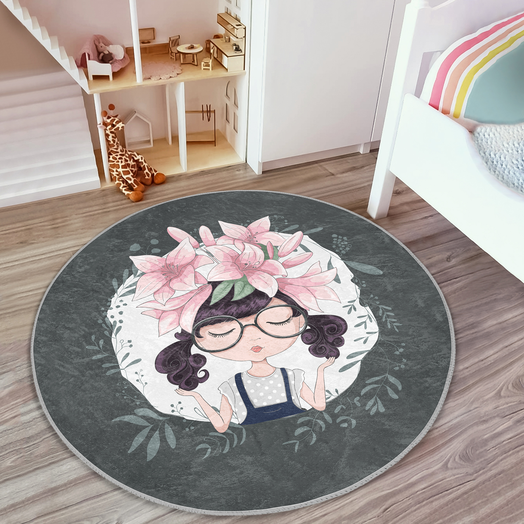 Fashion Girl Çocuk & Genç Odası Makinede Yıkanabilir Kaymaz Tabanlı Yuvarlak Çocuk Halısı