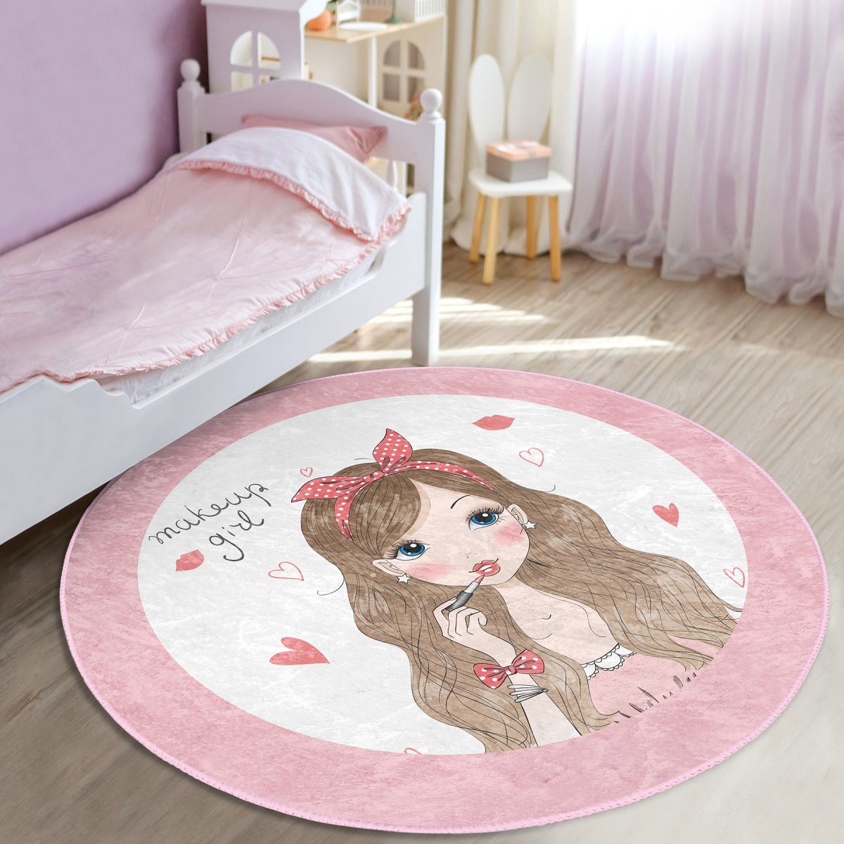 Fashion Girl Çocuk & Genç Odası Makinede Yıkanabilir Kaymaz Tabanlı Yuvarlak Çocuk Halısı