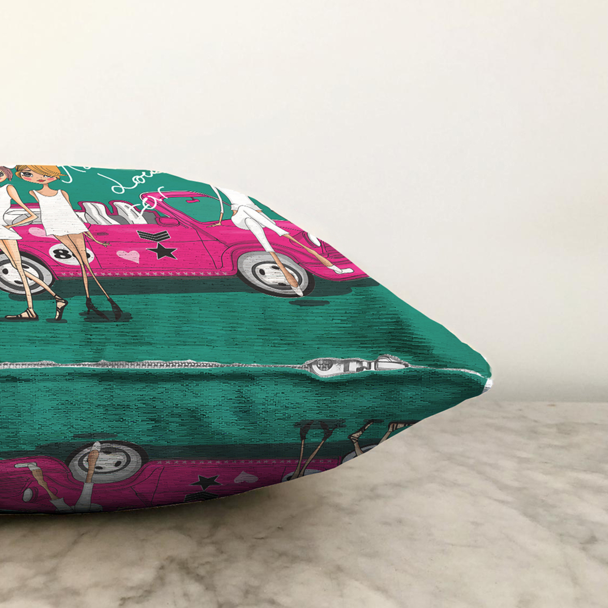 Fashion Girl Dijital Baskılı Modern Raşel Kadife Yastık Kırlent Kılıfı