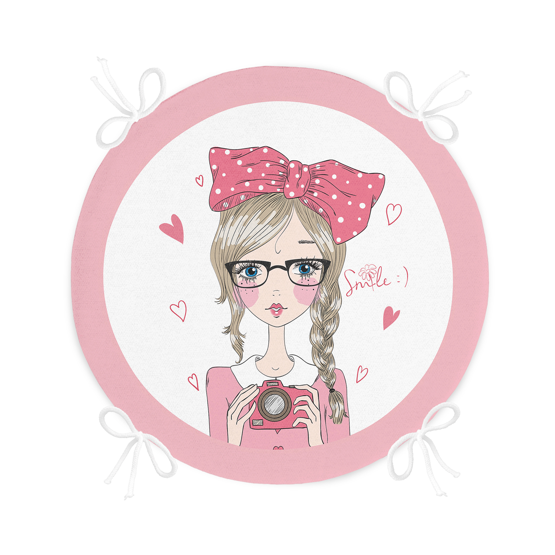 Fashion Girl Dijital Baskılı Modern Yuvarlak Fermuarlı Sandalye Minderi Realhomes