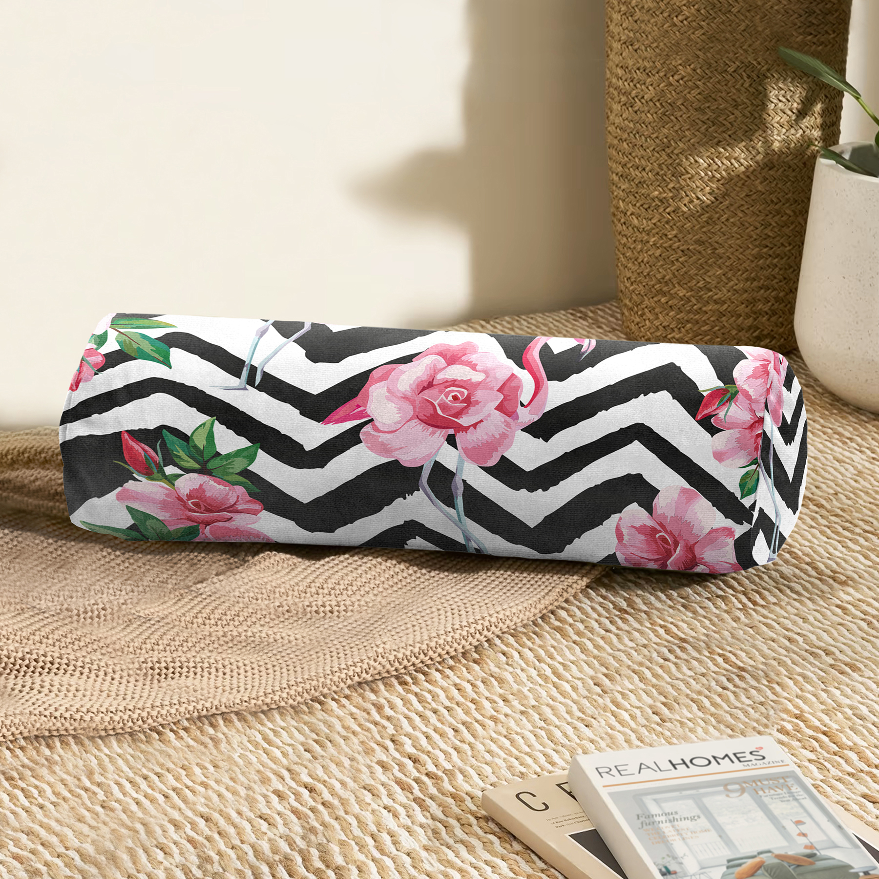 RealHomes Çok Amaçlı Dijital Baskılı Fermuarlı Süet Silindir & Berjer Yastık