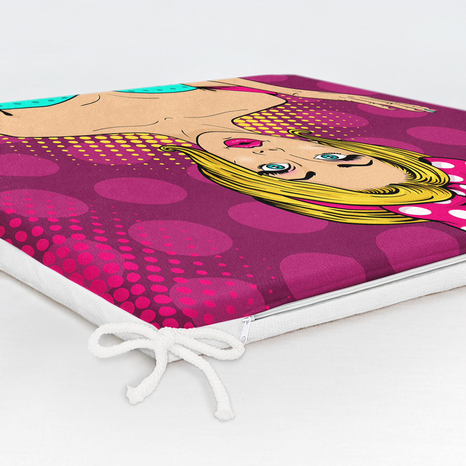 Fuşya Puanlı Popart Desenli Dekoratif Fermuarlı Sandalye Minderi
