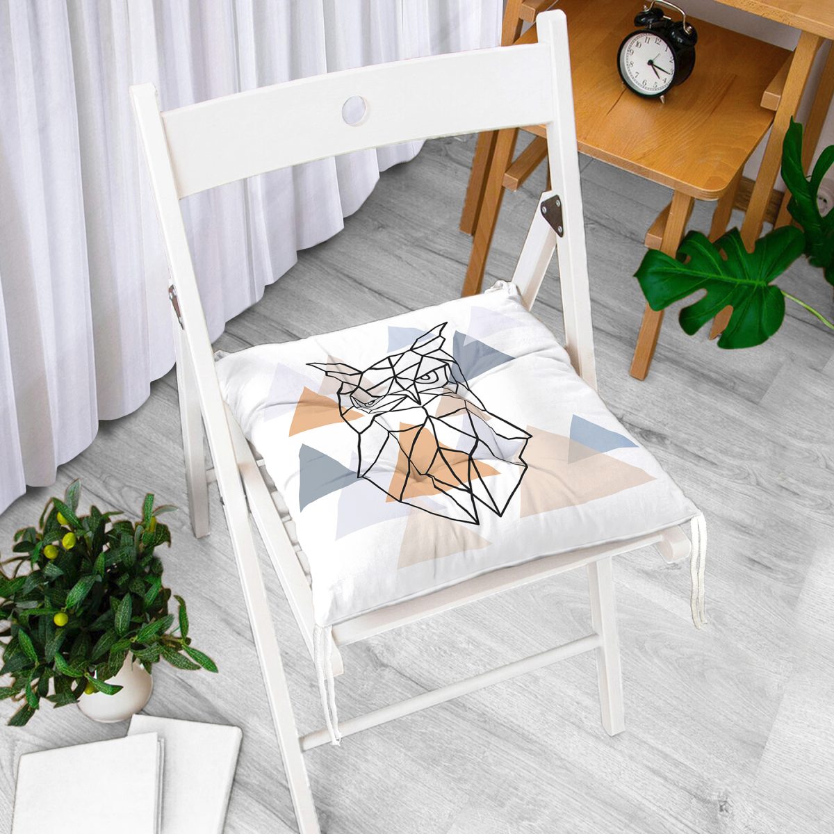 Geometrik Çizimlerden Oluşan Baykuş Motifli Özel Tasarım Pofuduk Sandalye Minderi Realhomes
