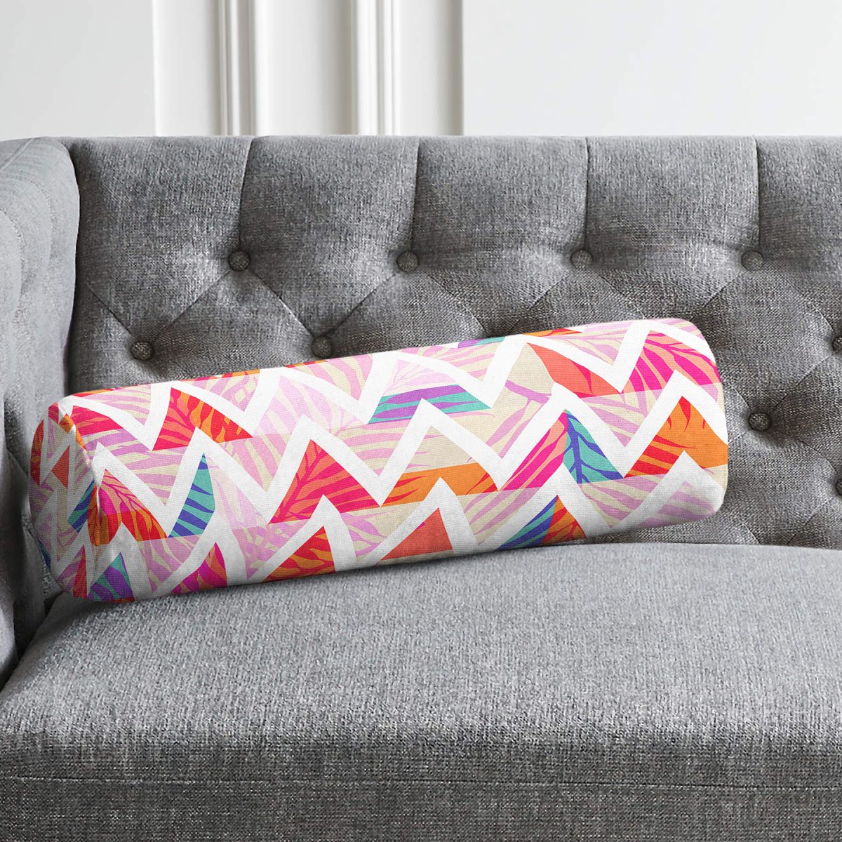 Geometrik Desenli Renkli Zeminli Modern İç Dolgulu – Fermuarlı Süet Silindir Rulo Yastık Kırlent