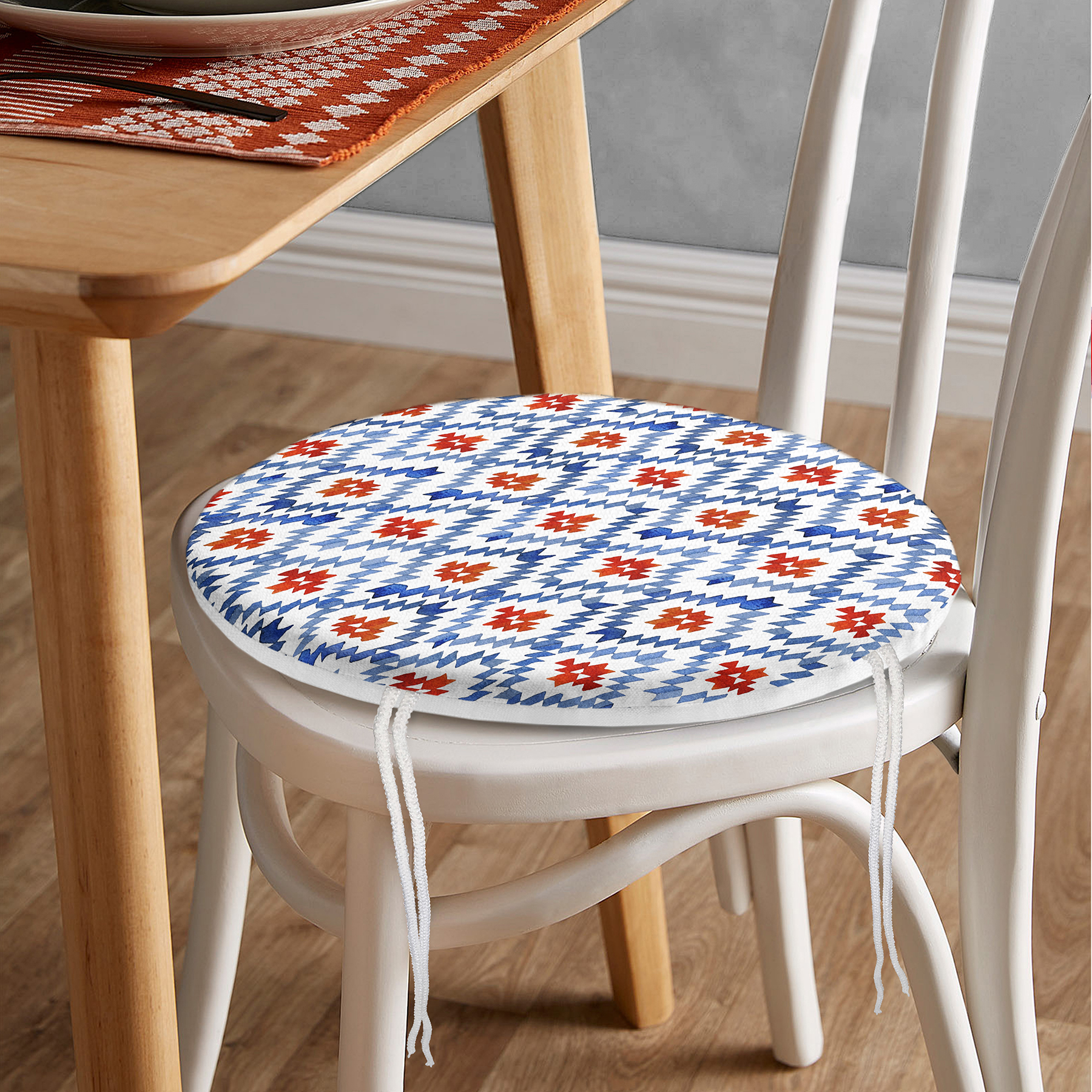 Geometrik Mavi Çini Desenli Modern Yuvarlak Fermuarlı Sandalye Minderi Realhomes