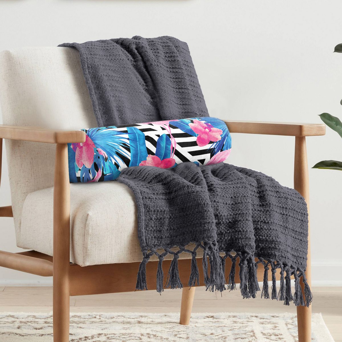 RealHomes Çok Amaçlı Dijital Baskılı Fermuarlı Süet Silindir & Berjer Yastık